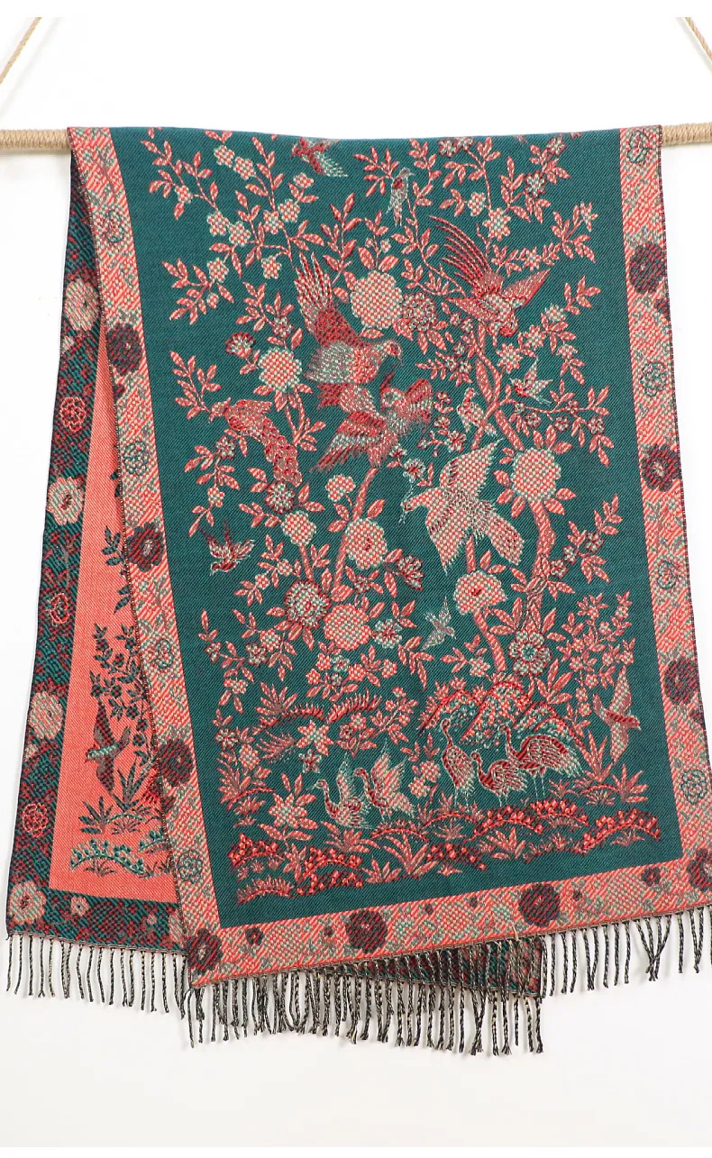 衣都精品- 新款文藝復古優雅氣質荷塘月色麗錦緞圍巾