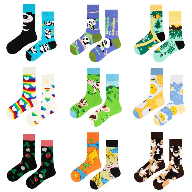 所售品名:襪子 產品顏色 : #10慵懶熊貓,#11竹園熊貓,#12山脈風光,#13條紋愛心,#14農園奶牛,#15艾荷包蛋,#16綠葉草莓,#17抽象寵物,#18狗狗派對 產品尺碼:均碼 主要成分 : 棉