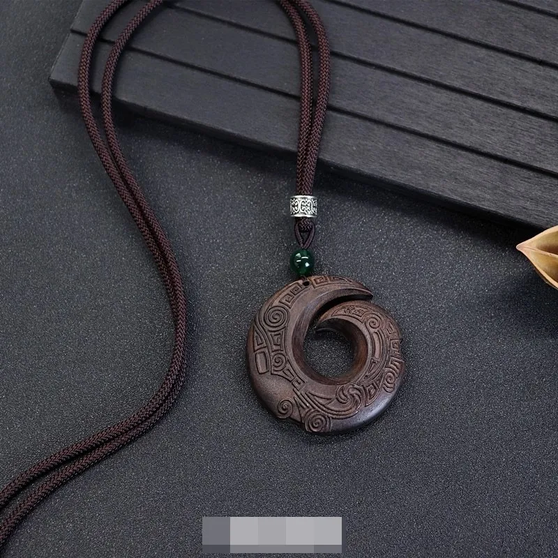 衣都精品- 新款民族風黑檀木手工雕刻項鍊