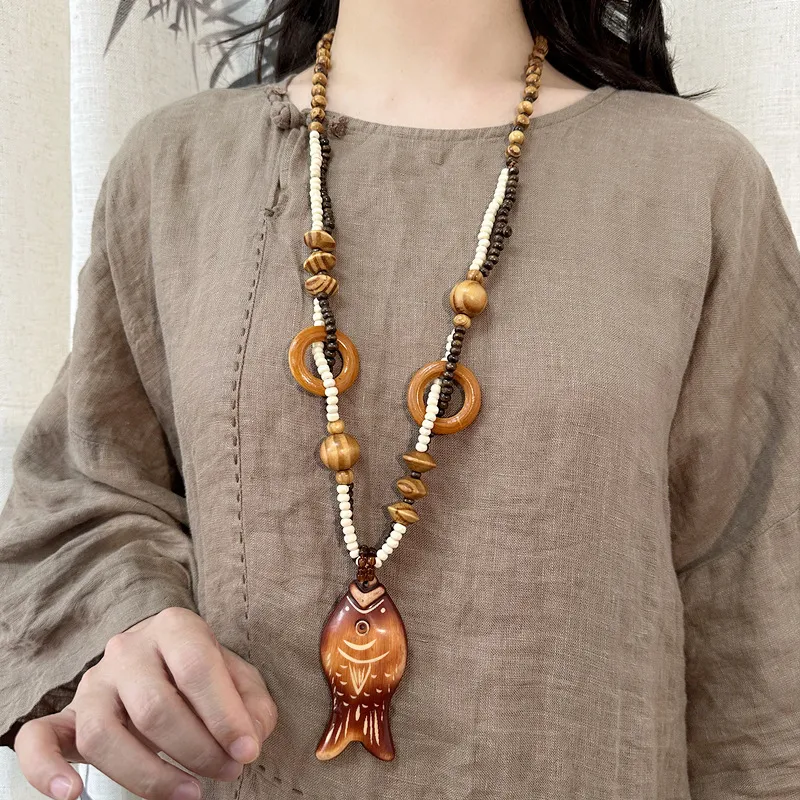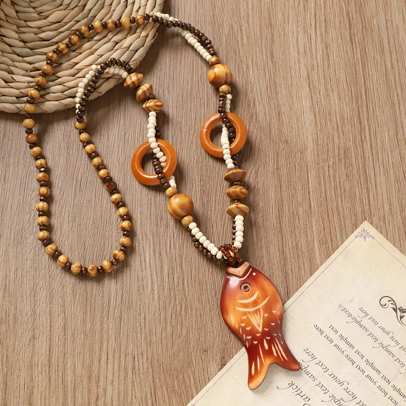 衣都精品- 新款波西米亞民族風木質串珠項鍊