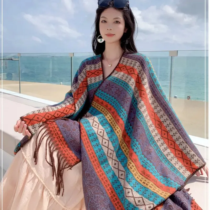 衣都精品- 新款民族風旅遊超大流蘇披肩