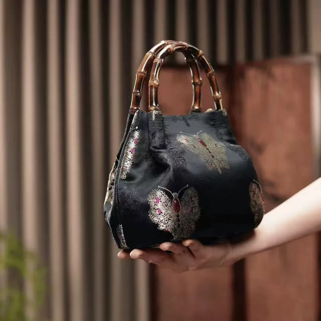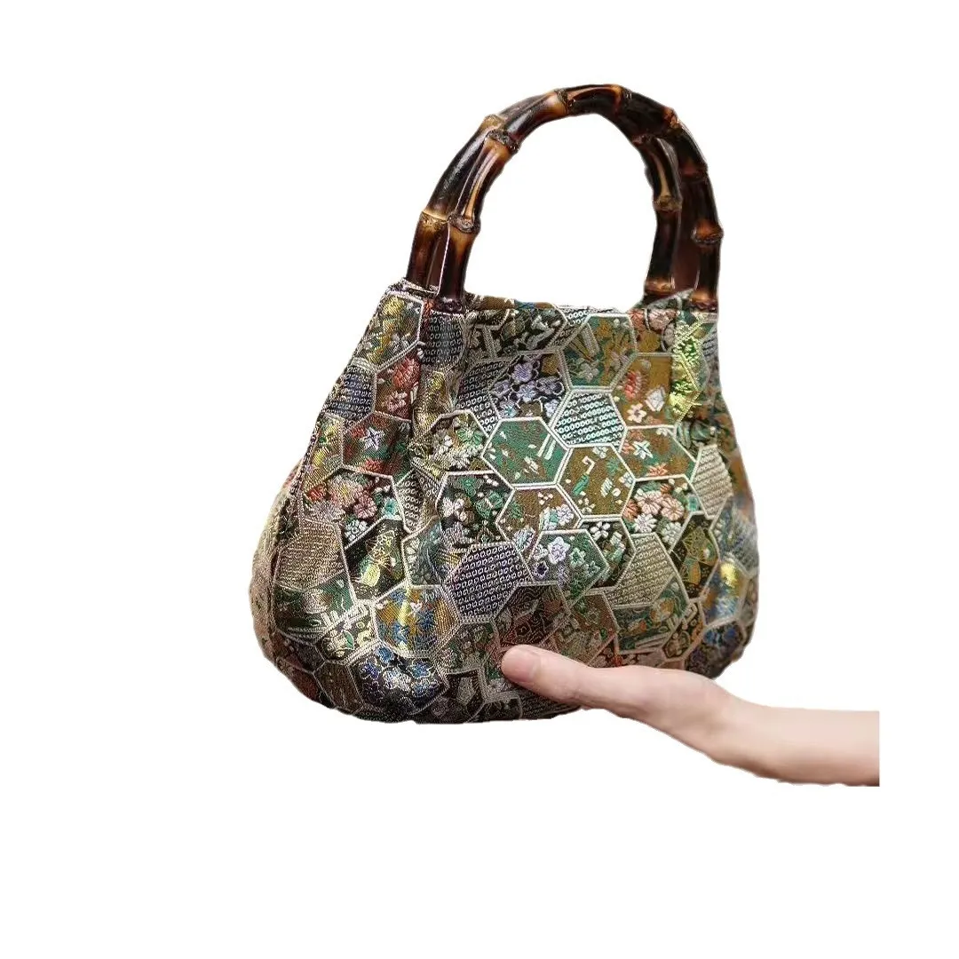 衣都精品- 新款民族風提花刺繡竹節手提包
