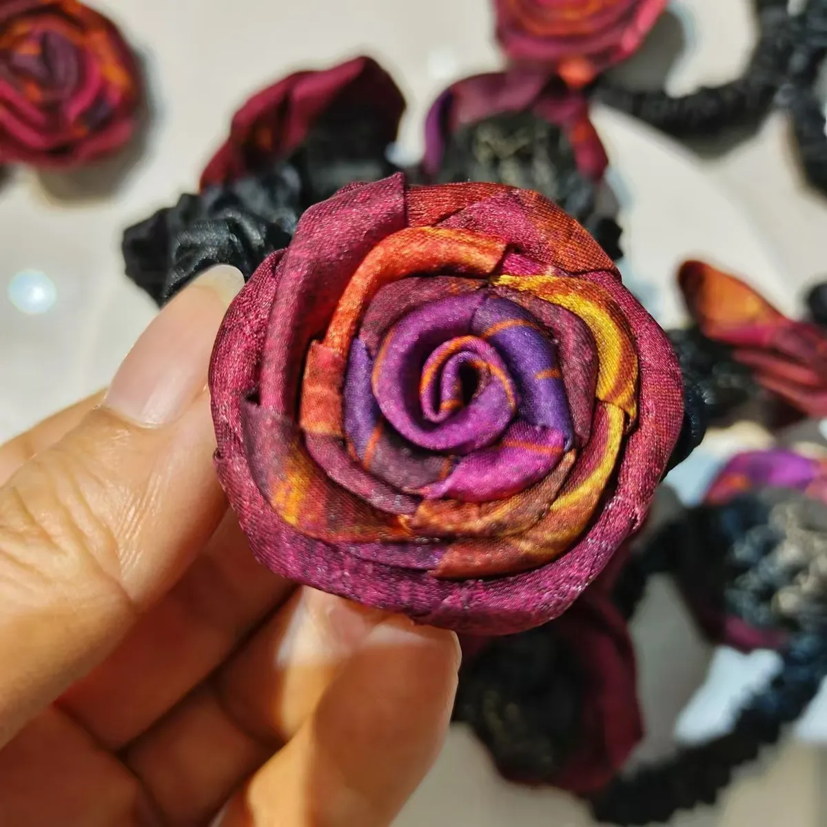 衣都精品- 新款時尚香雲紗純手工玫瑰花髮圈