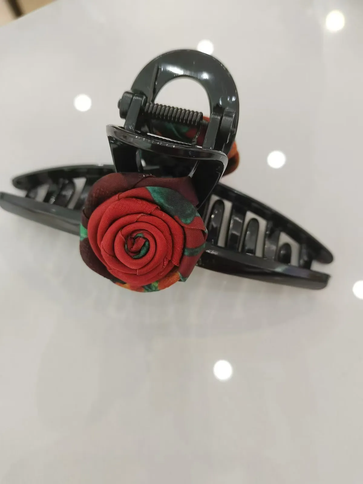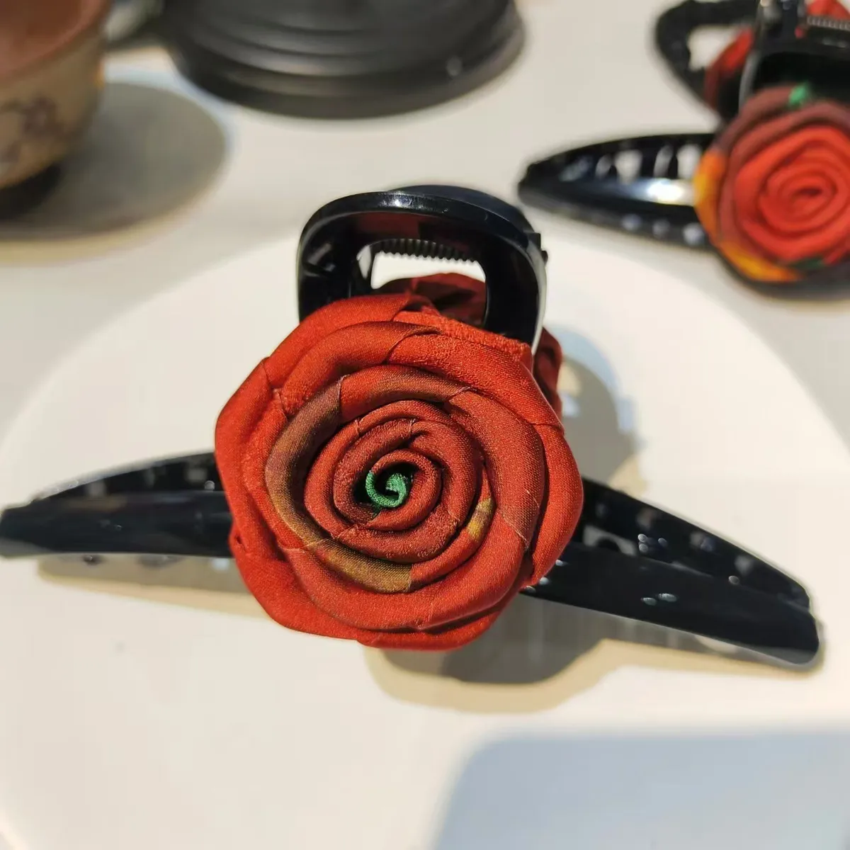 衣都精品- 新款輕奢爆款香雲紗手工玫瑰大抓夾髮飾