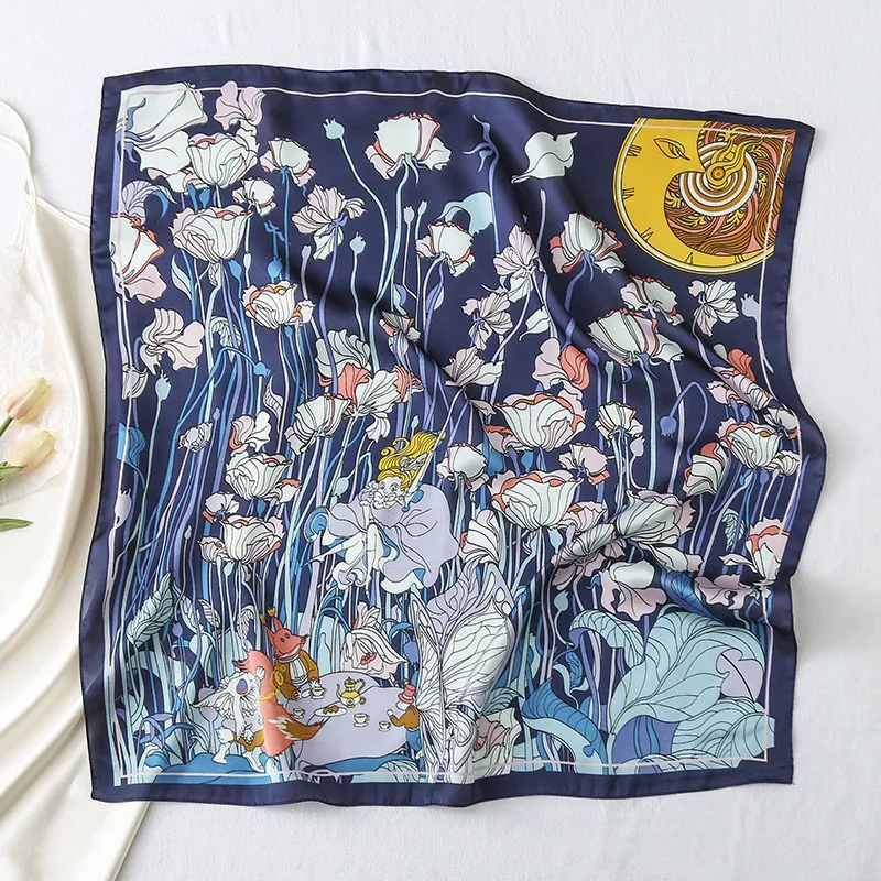 衣都精品- 新款時尚插畫系列喵星人圖案印花絲巾