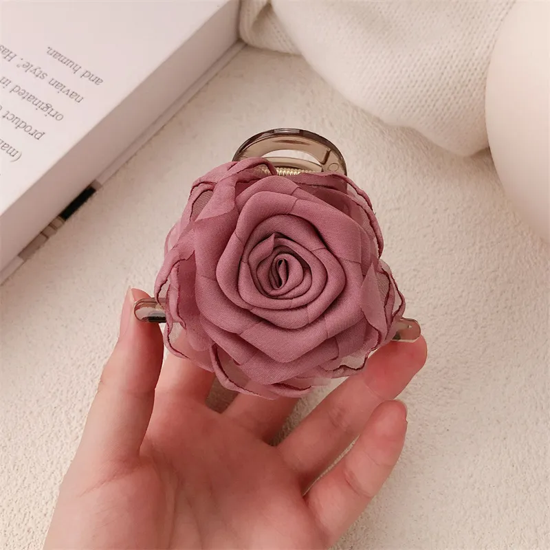 衣都精品- 新款立體玫瑰花大號抓夾髮飾