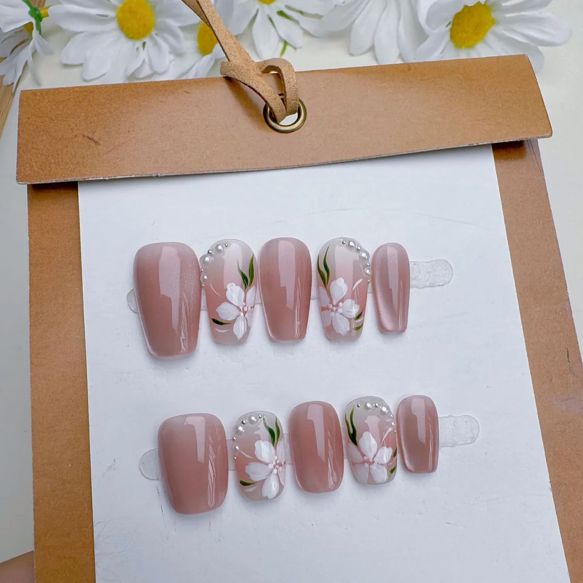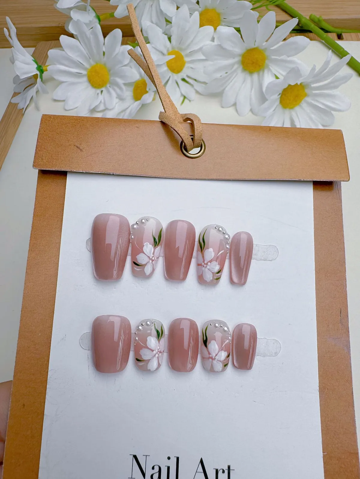 衣都精品- 新款貓眼手繪山茶花清新甜美甲貼片
