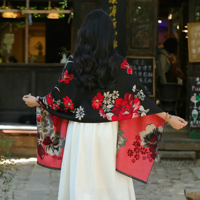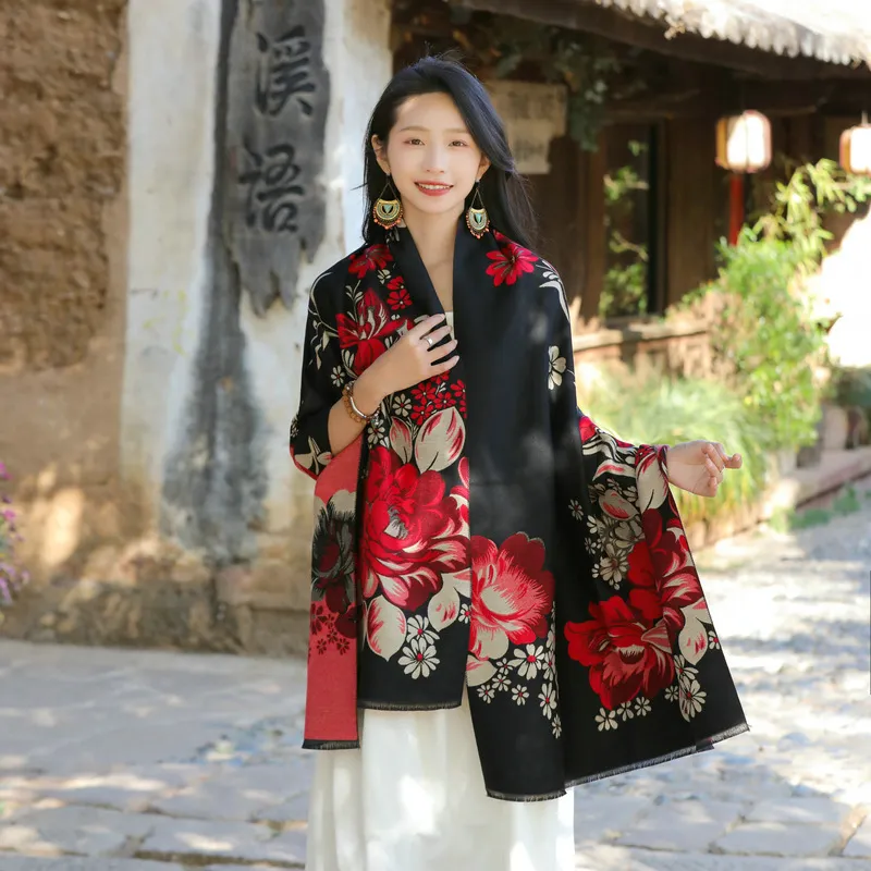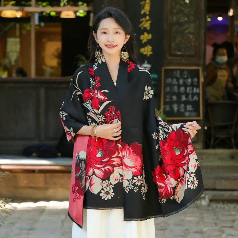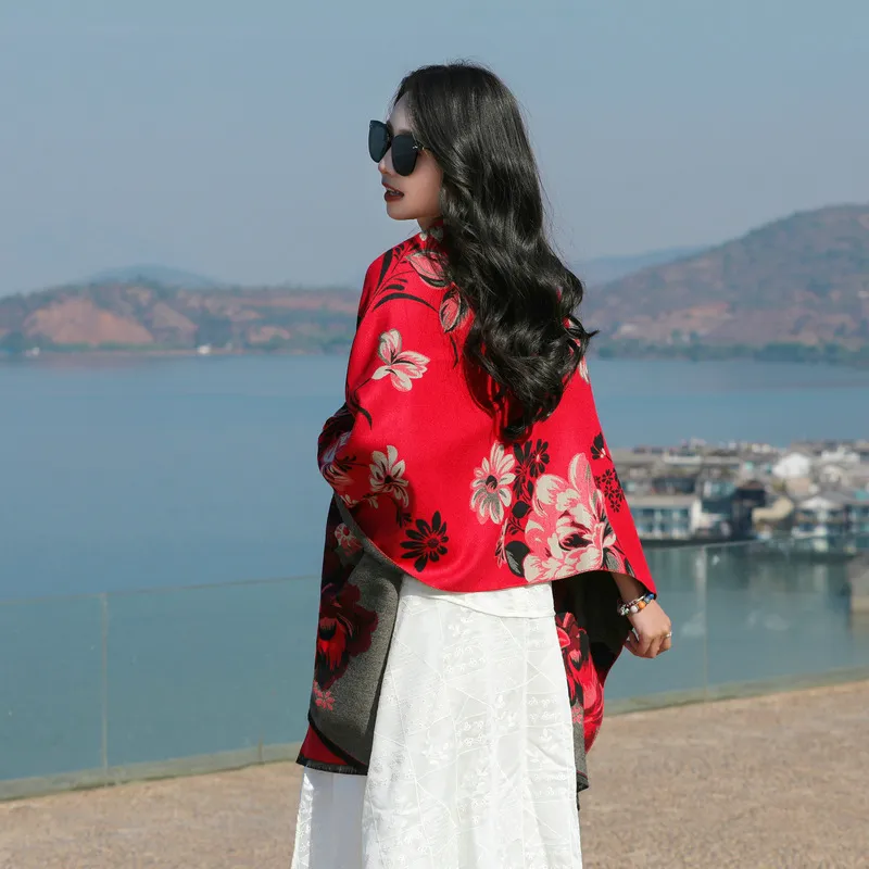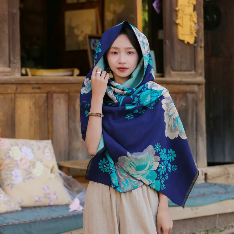 衣都精品- 新款韓版仿羊絨拉毛民族風加厚披肩