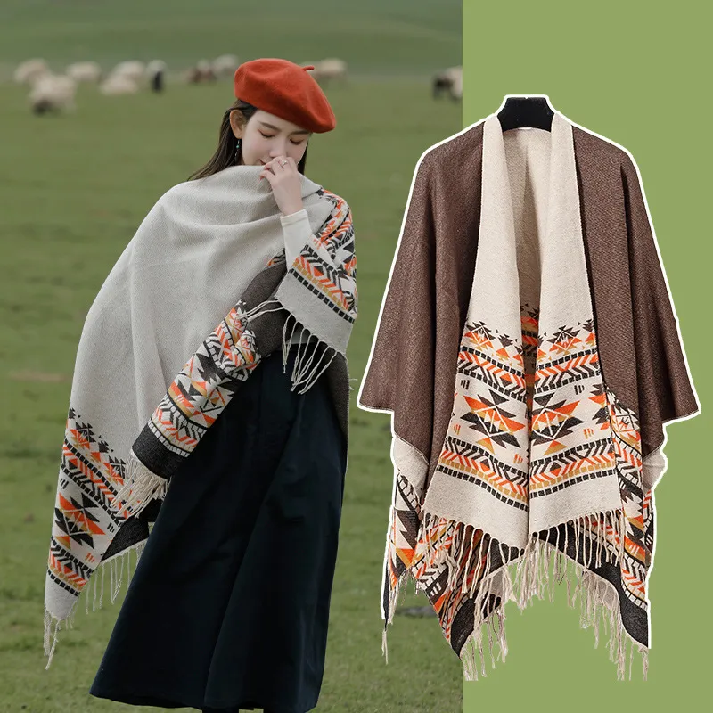 衣都精品- 新款復古民族風開叉幾何流蘇斗篷圍巾