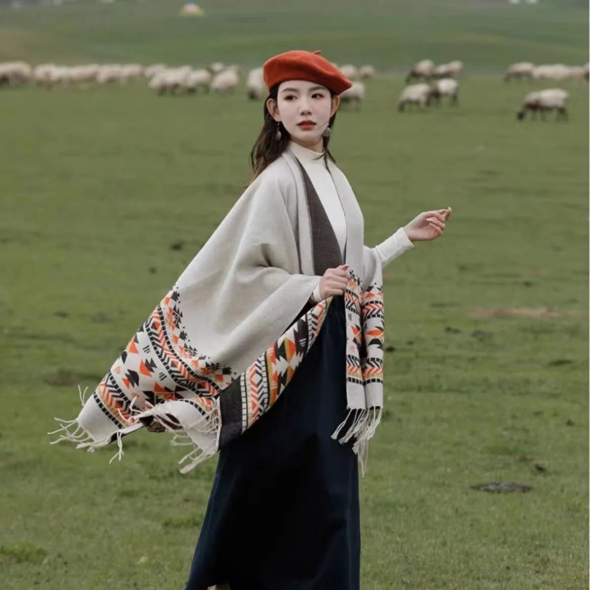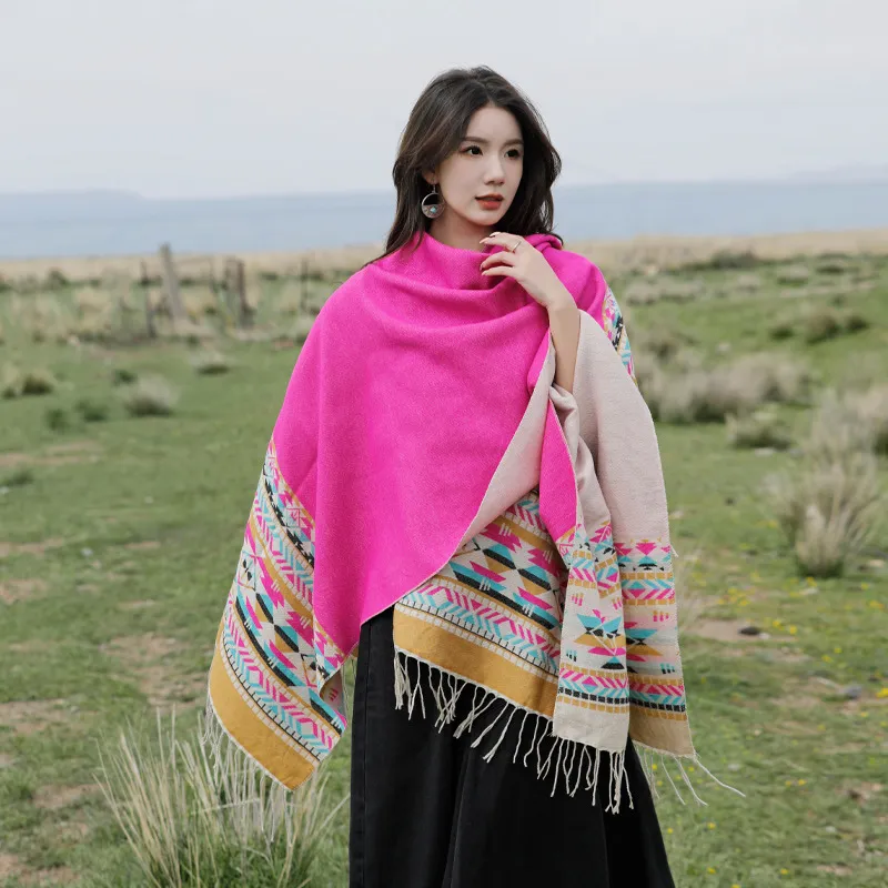 衣都精品- 新款韓版仿羊絨拉毛民族風加厚披肩