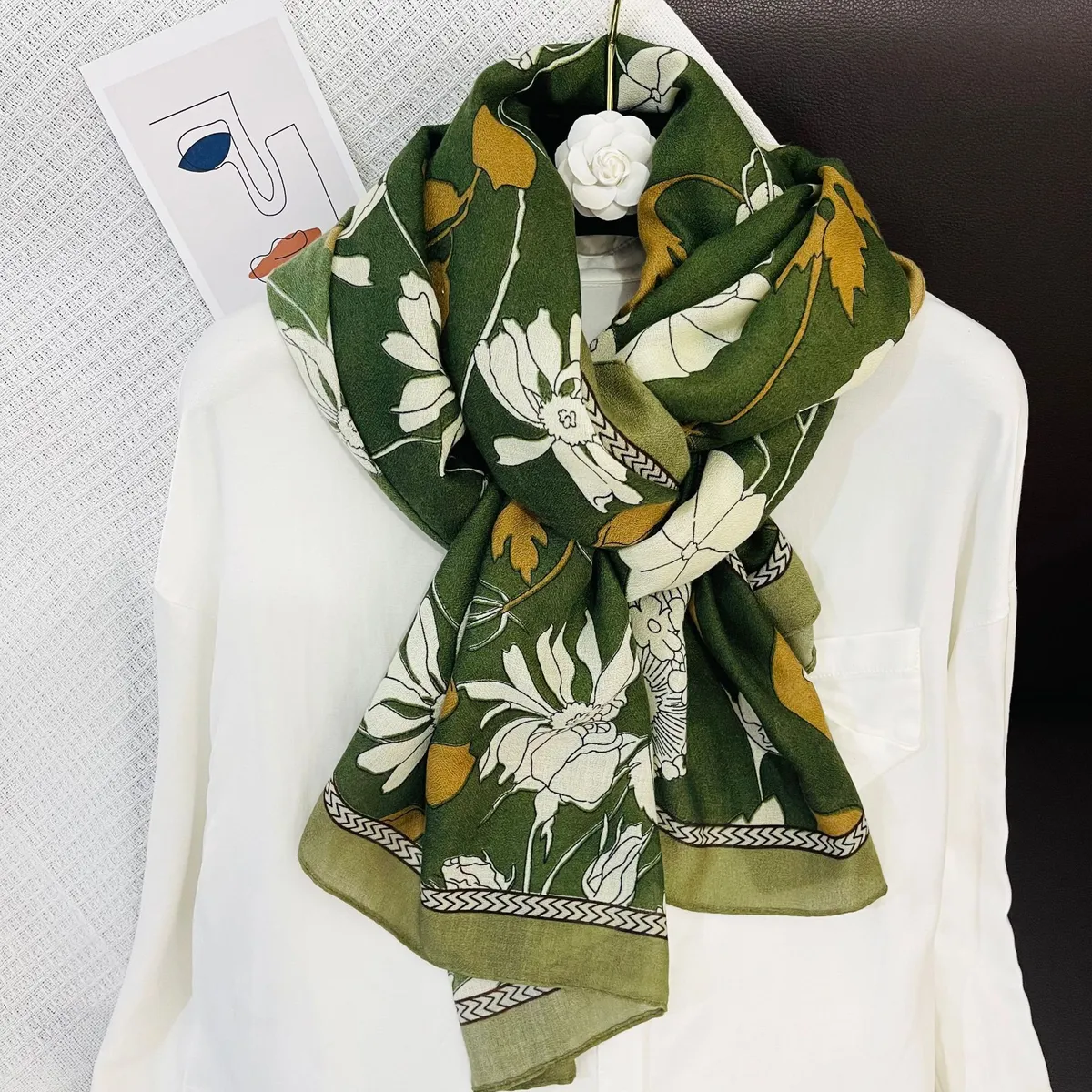 衣都精品- 新款韓國簡約素雅植物花朵手感長款披肩