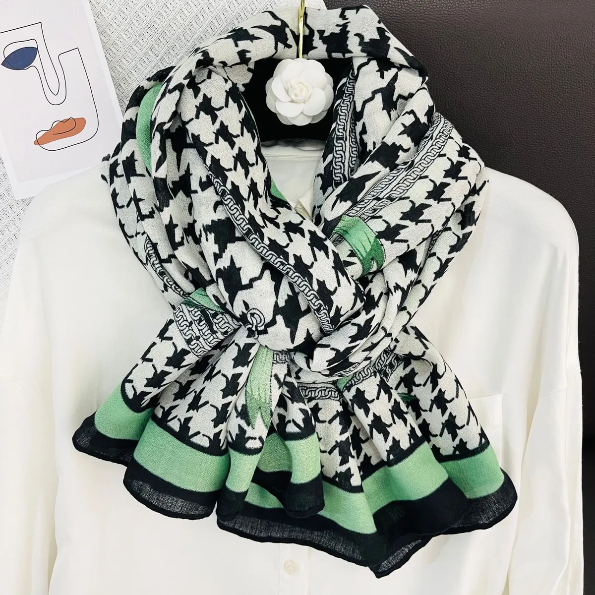 衣都精品- 新款韓版時尚網紅千鳥格棉麻圍巾