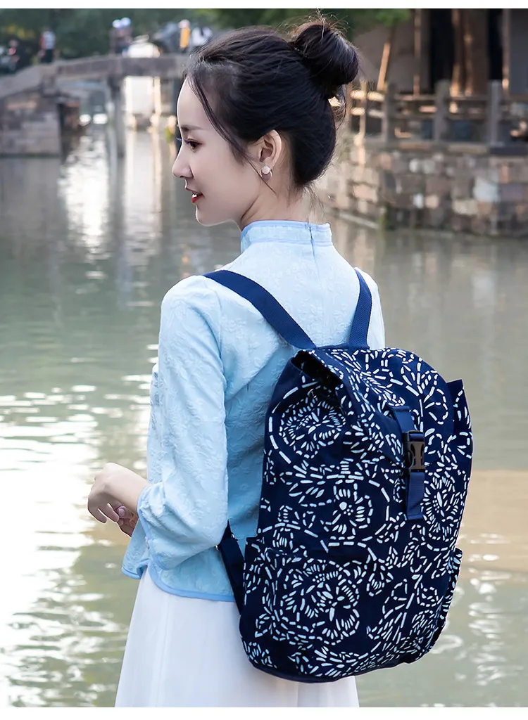 衣都精品- 新款藍印花手工蠟染特色雙肩包