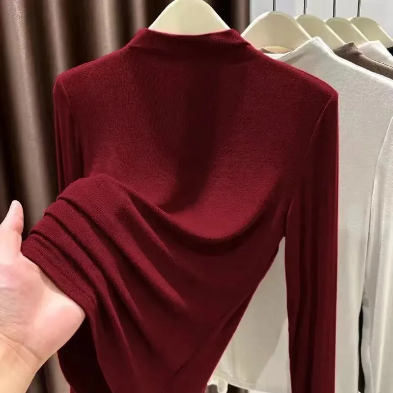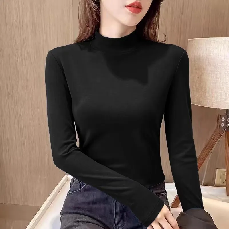 衣都精品- 新款德絨半高領純色時尚百搭顯瘦上衣