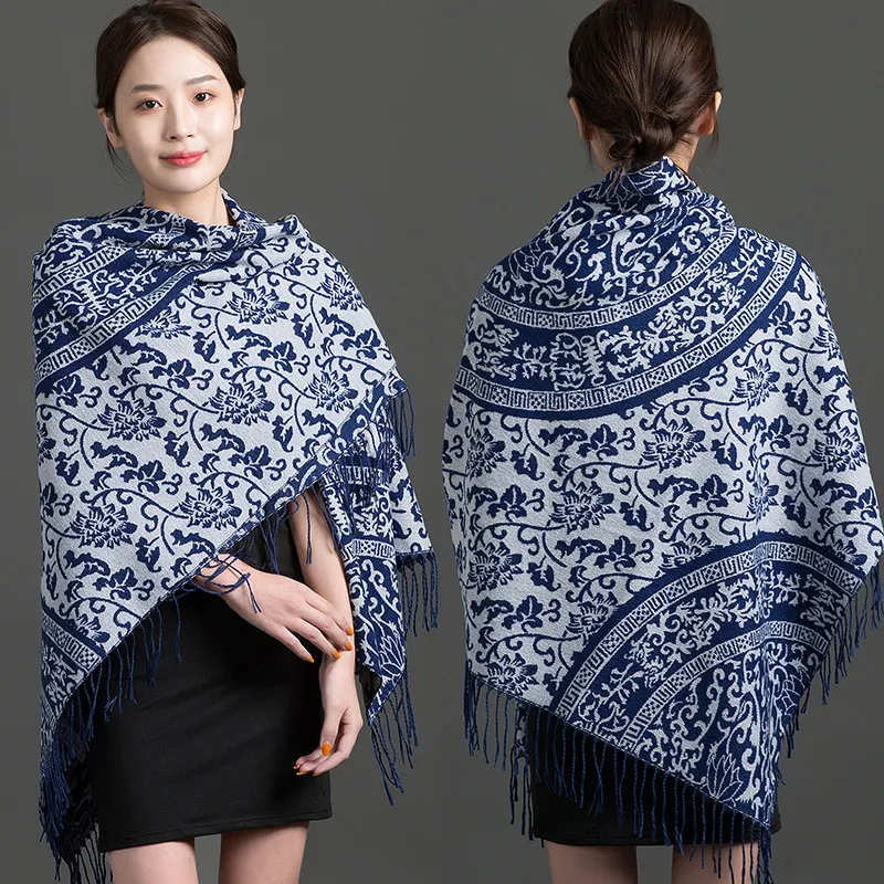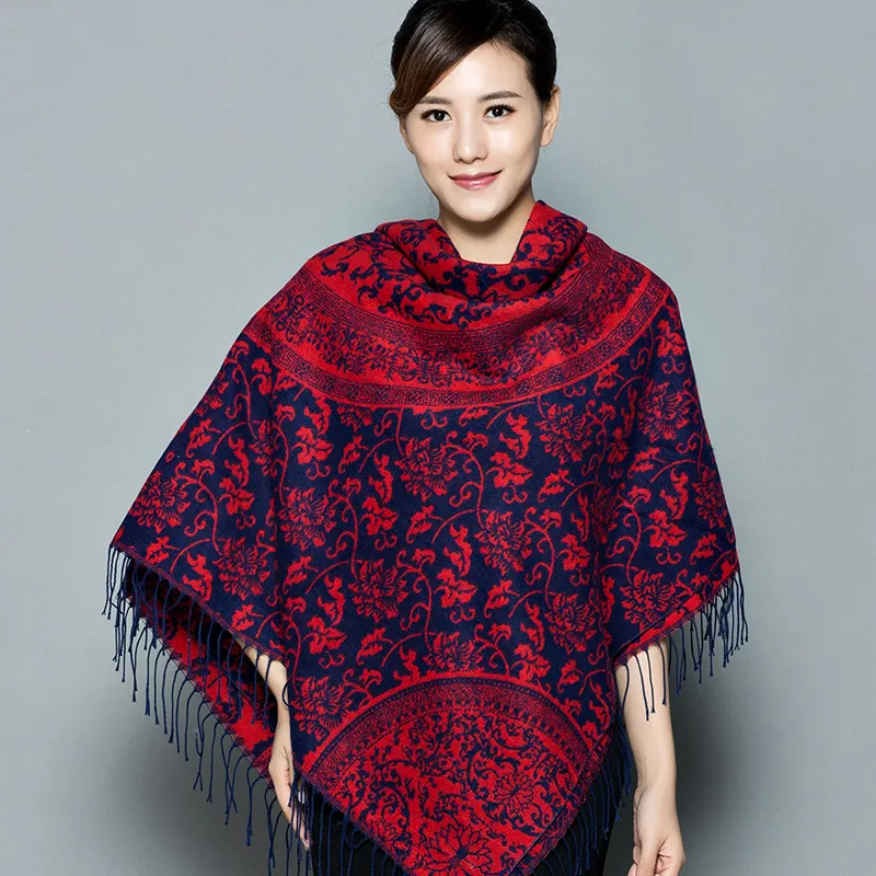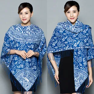 衣都精品- 新款民族風兩用加厚羊絨披肩