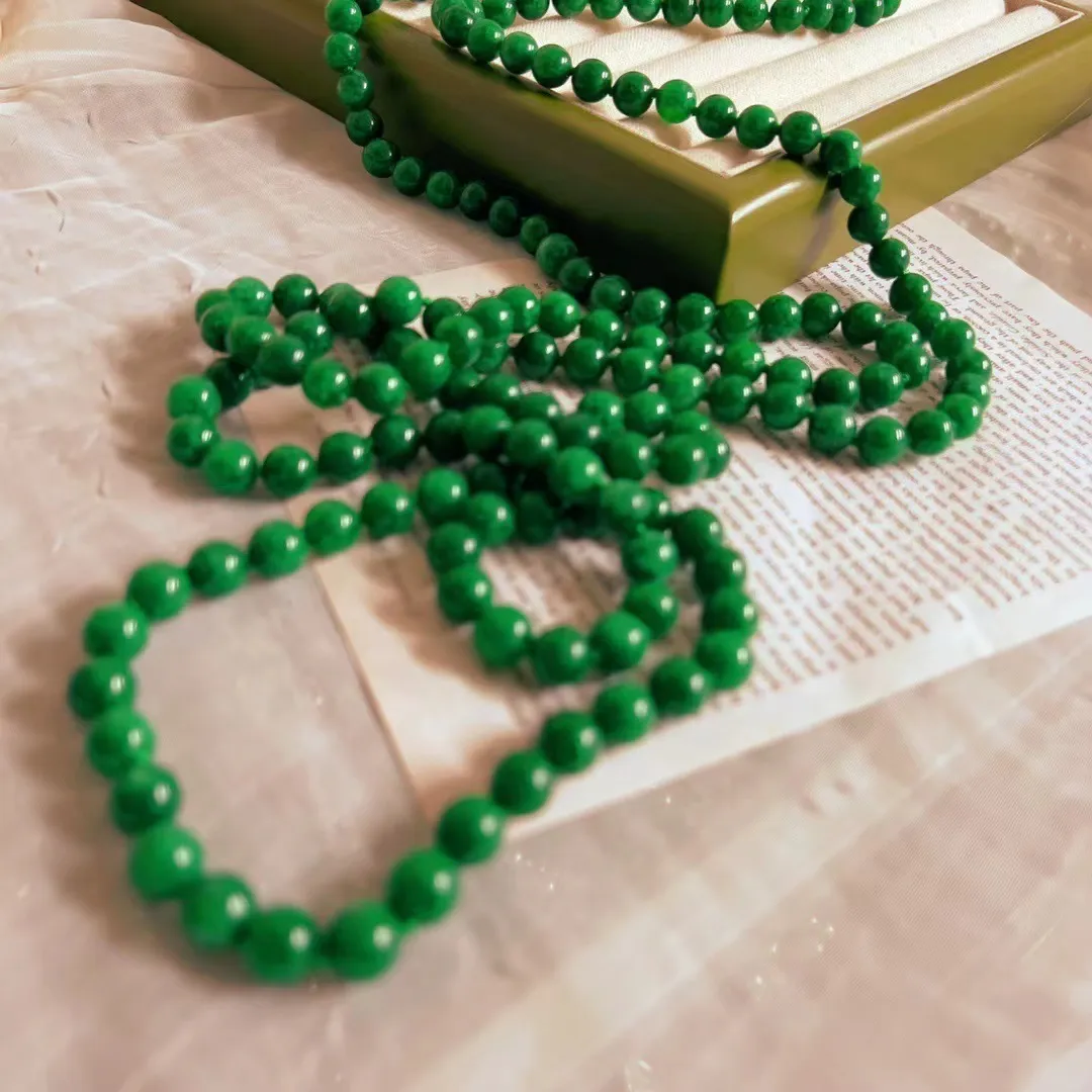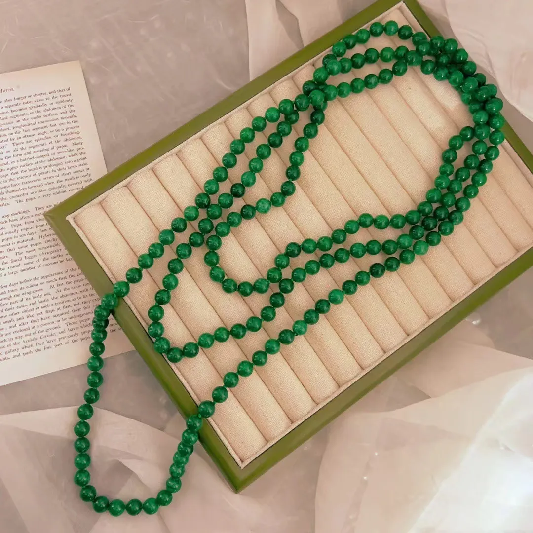 衣都精品- 新款中式翡翠色天然石英岩長款毛衣鏈