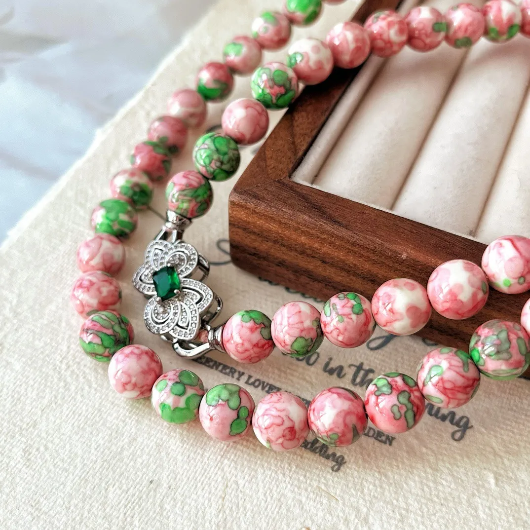 衣都精品- 新款復古甜汁桃桃粉綠琉璃陶瓷項鍊