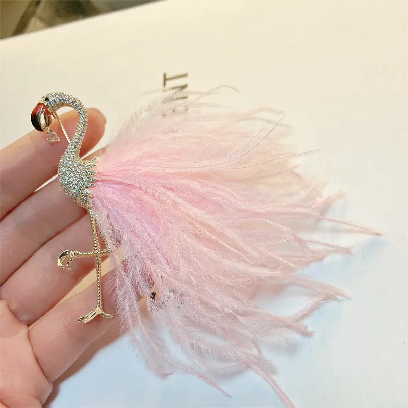 衣都精品- 新款韓國高級感羽毛火烈鳥胸針