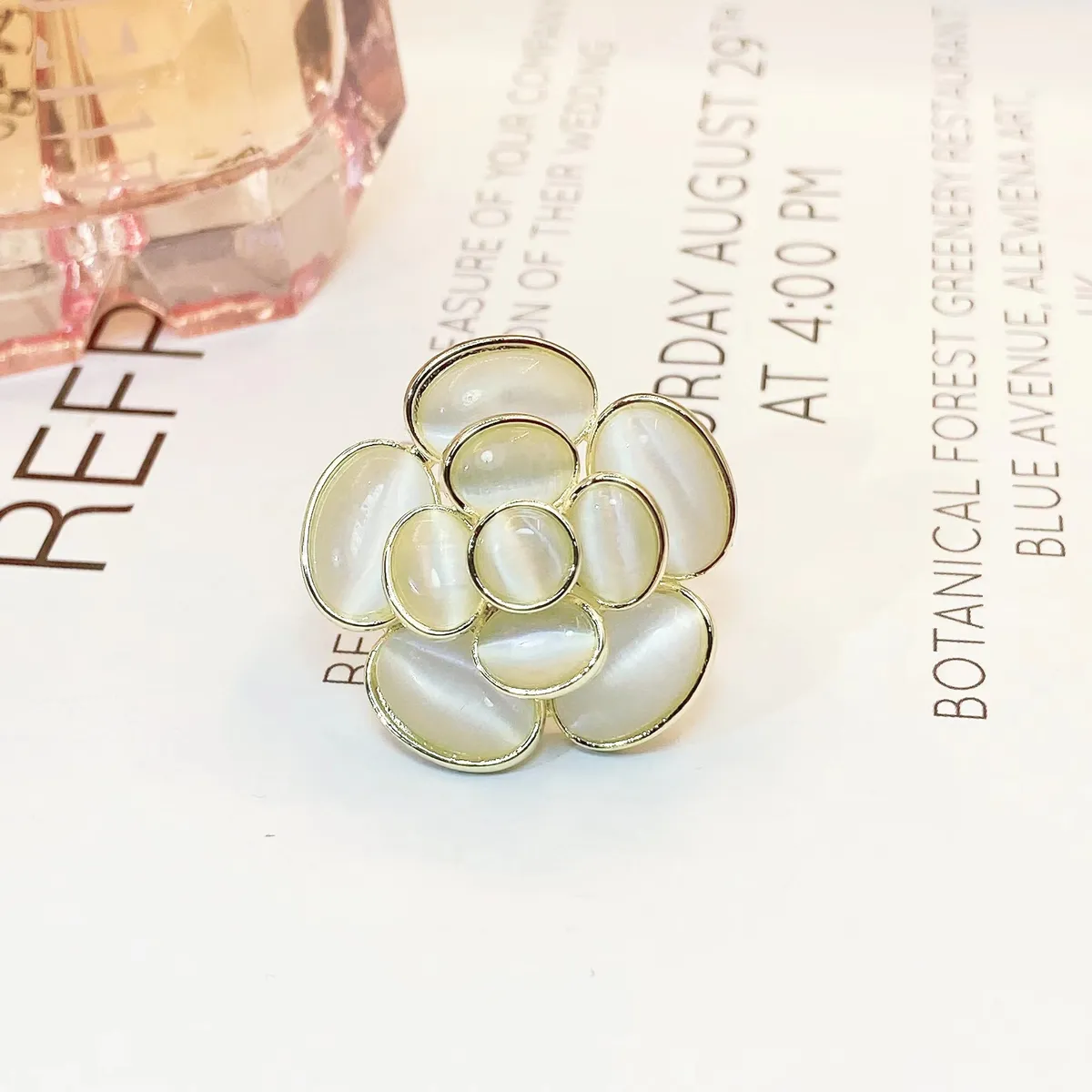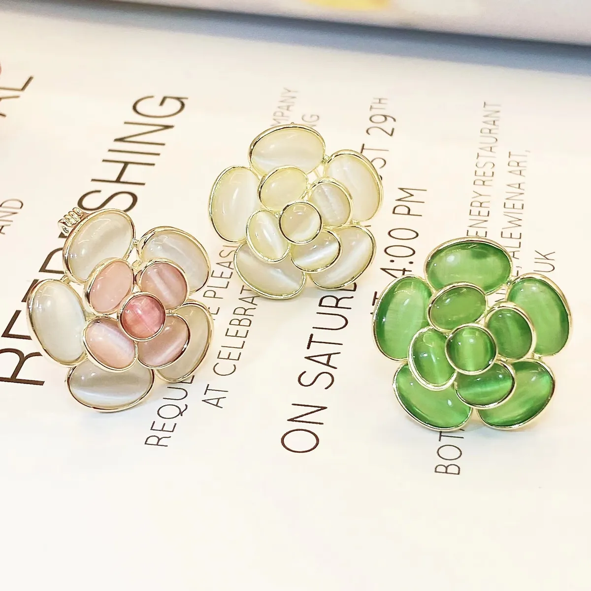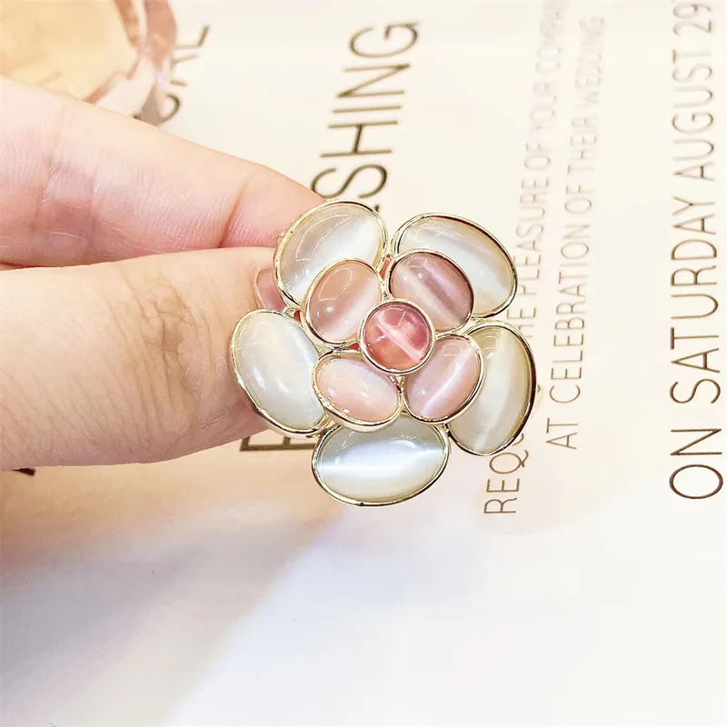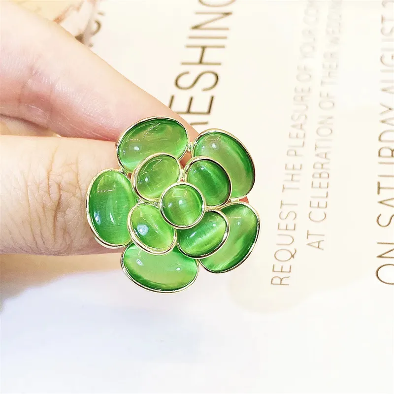 衣都精品- 新款高級感貓眼石山茶花胸針