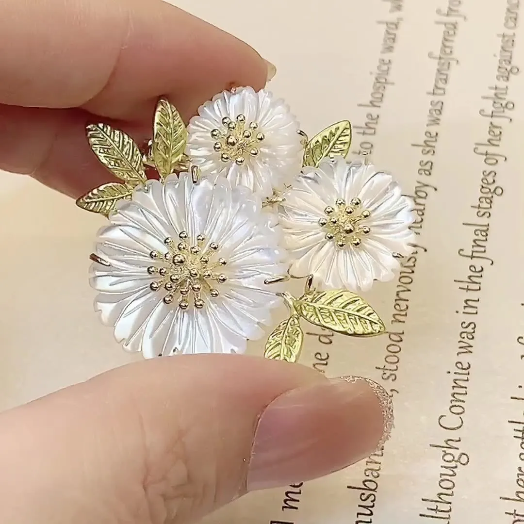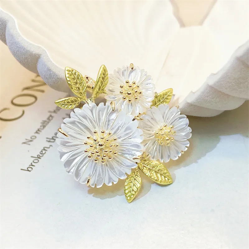 衣都精品- 新款時尚天然貝母雛菊胸針