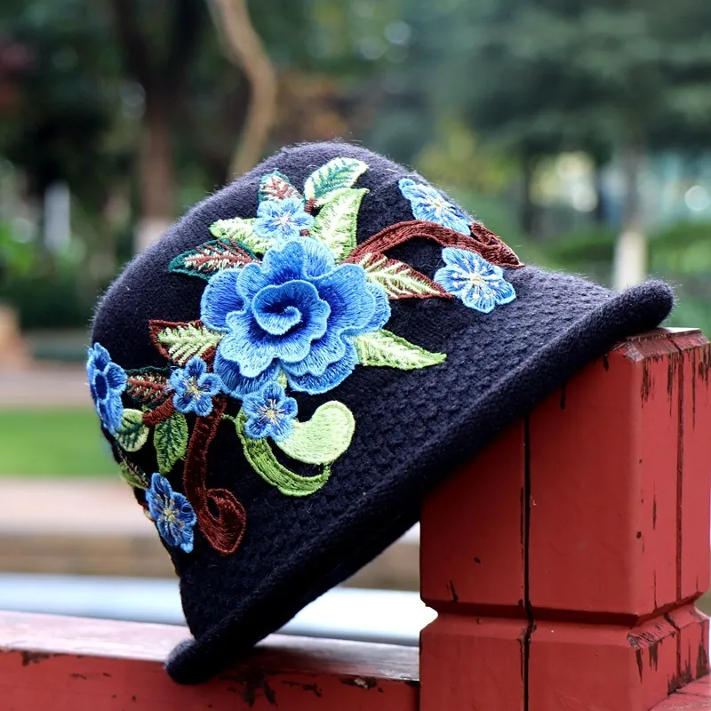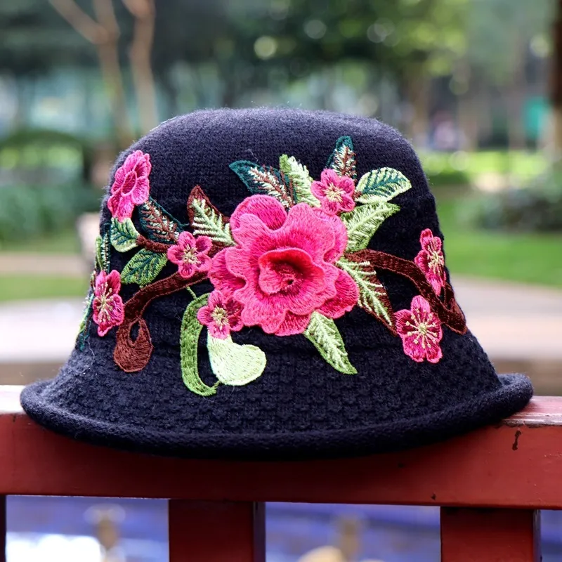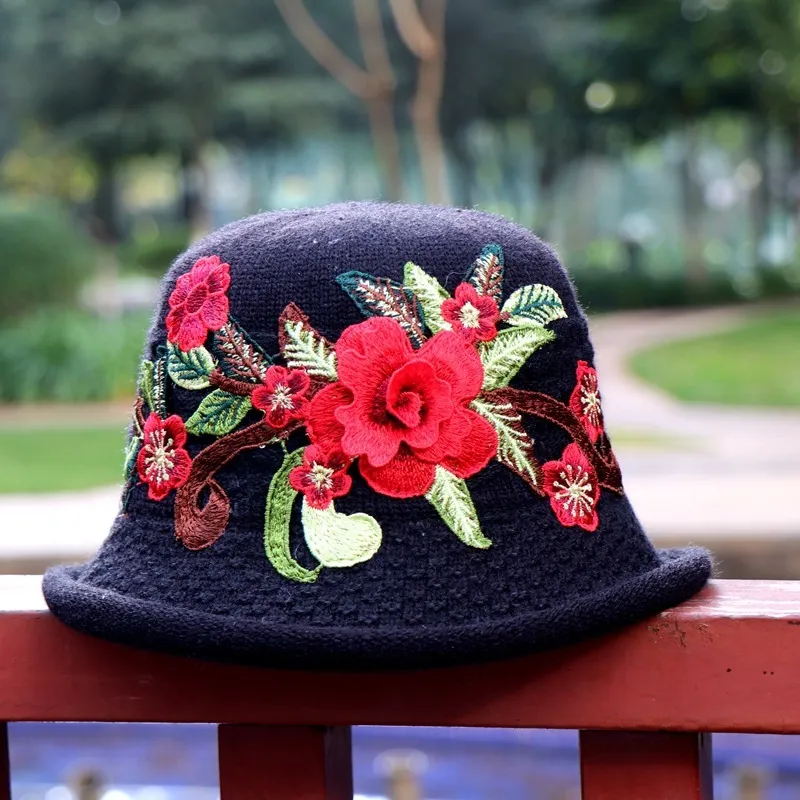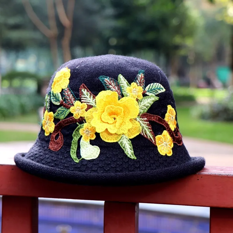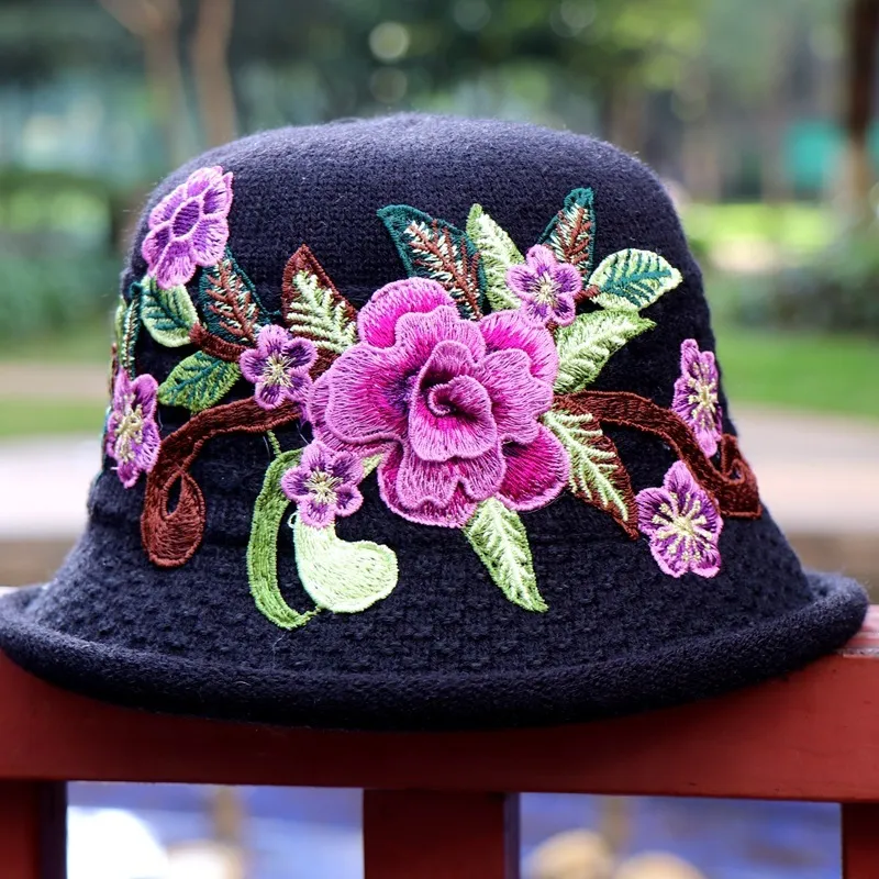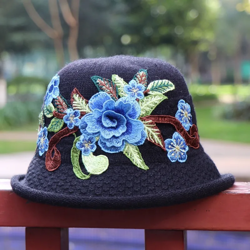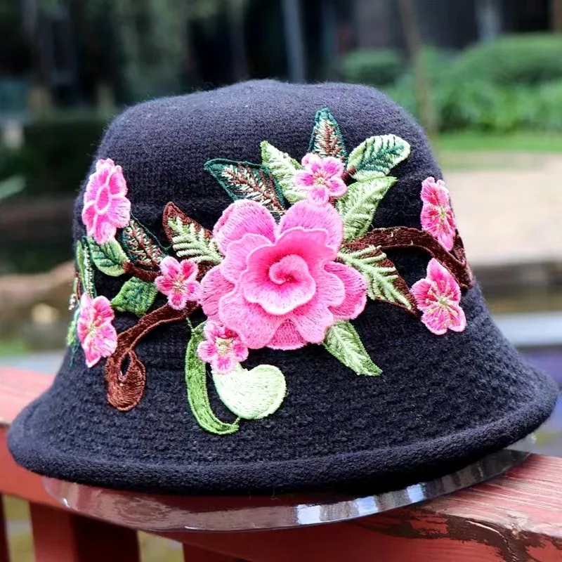 衣都精品- 新款民族風立體繡花可折疊漁夫帽
