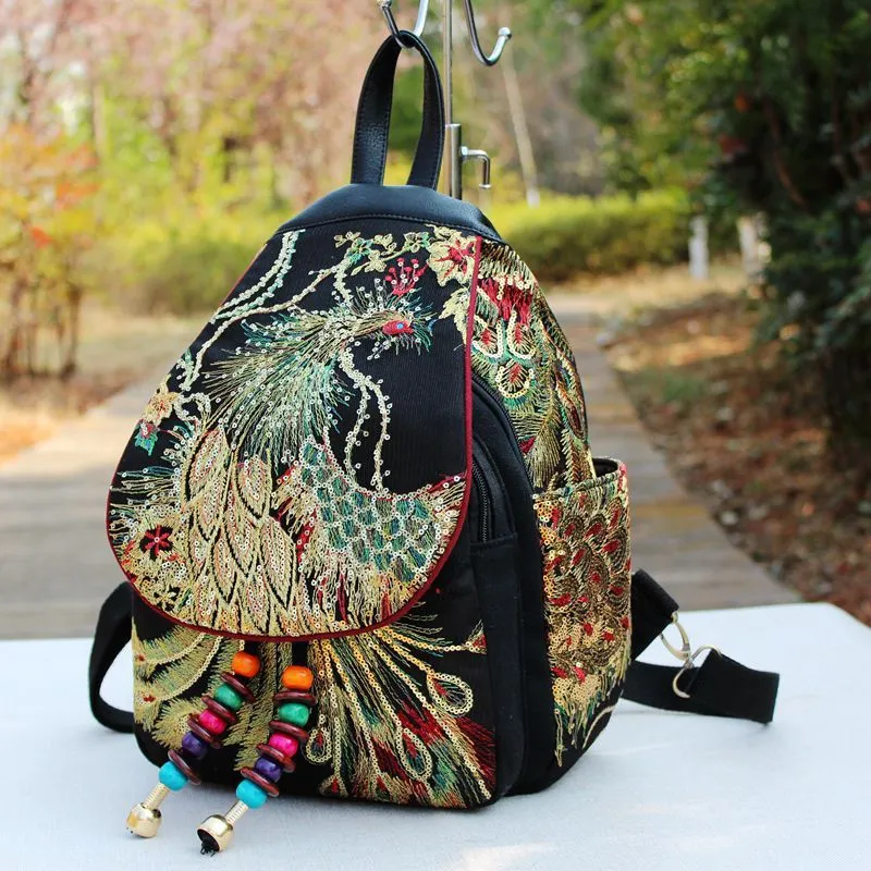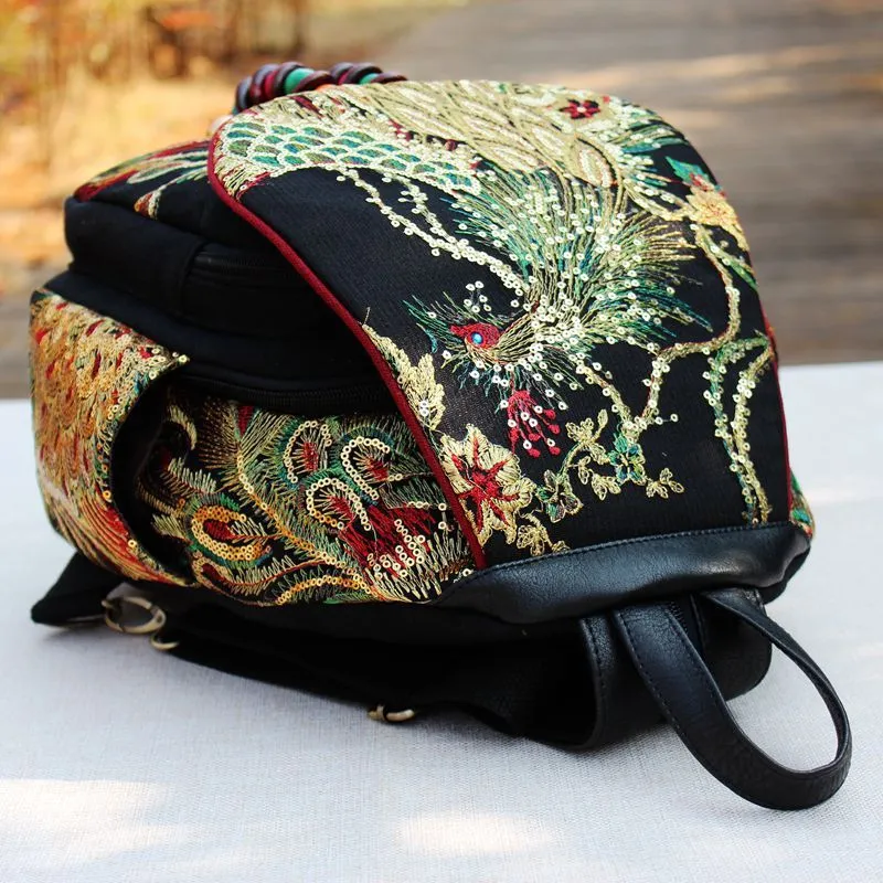 衣都精品- 新款民族風刺繡包亮片鳳凰牡丹雙肩包