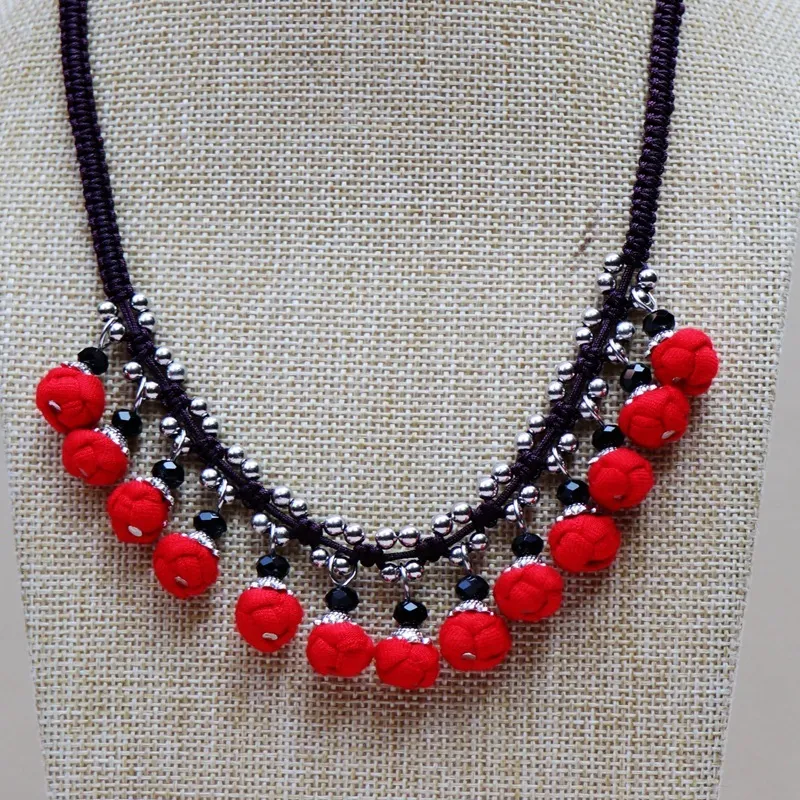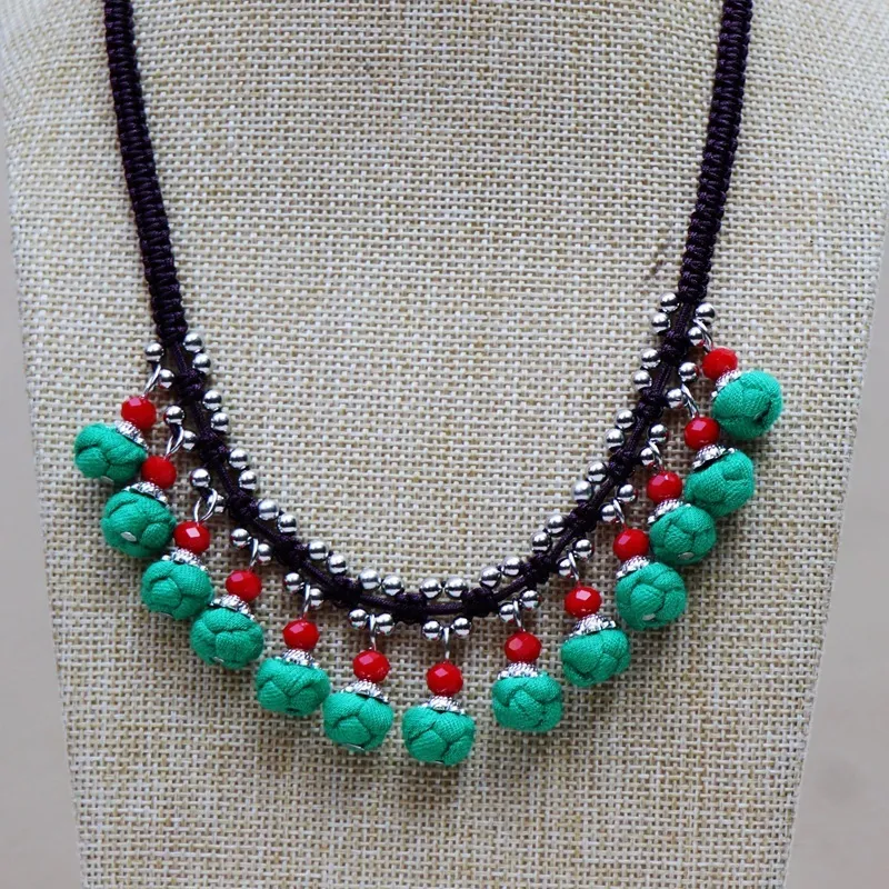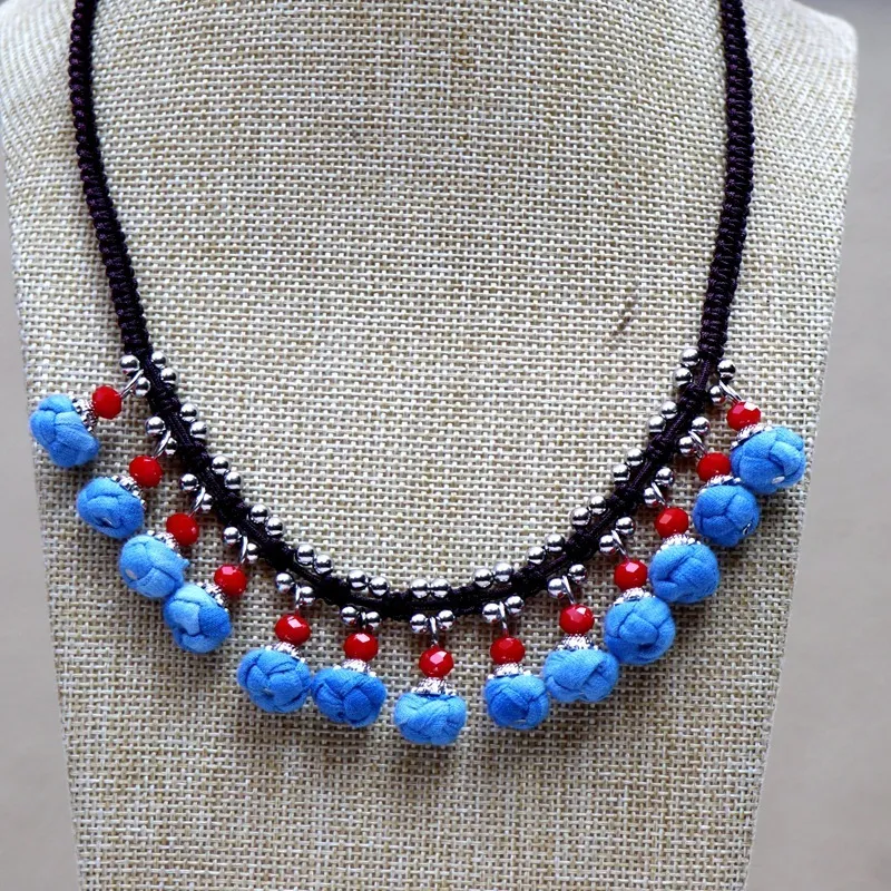 衣都精品- 新款民族風復古刺繡長款花朵項鍊