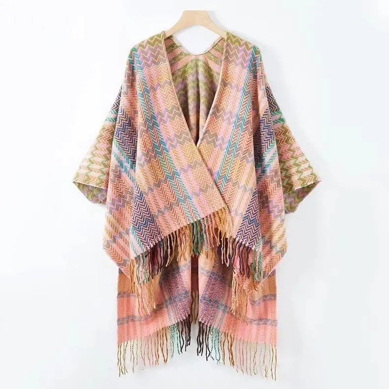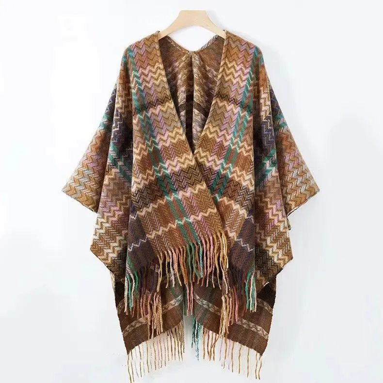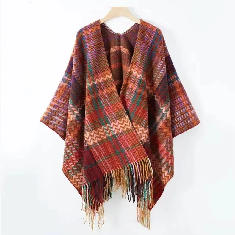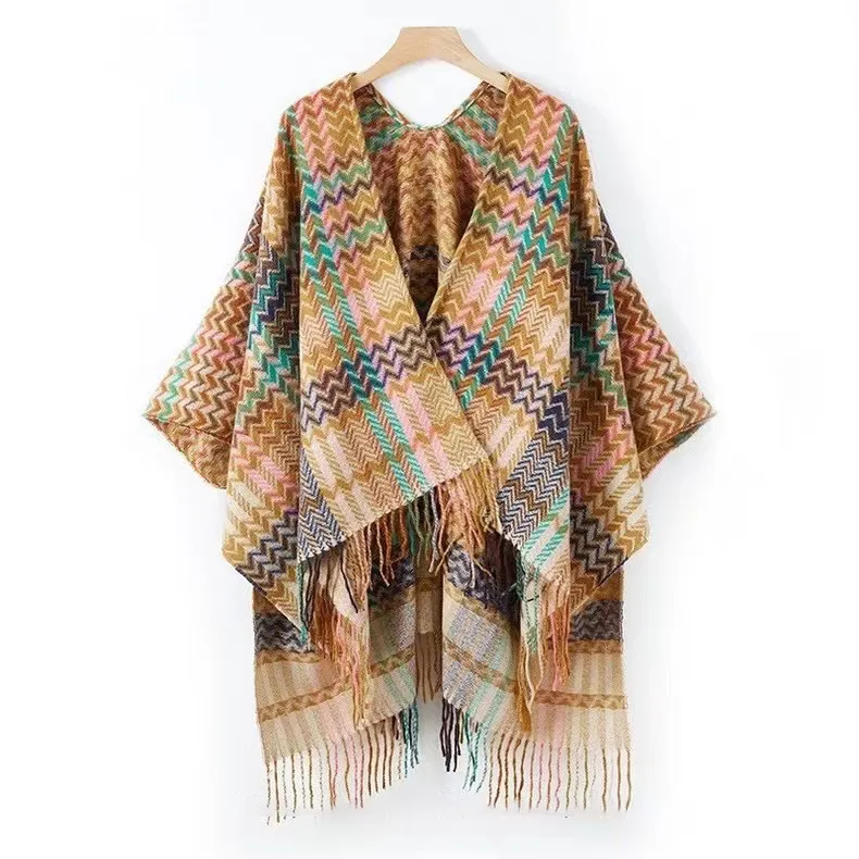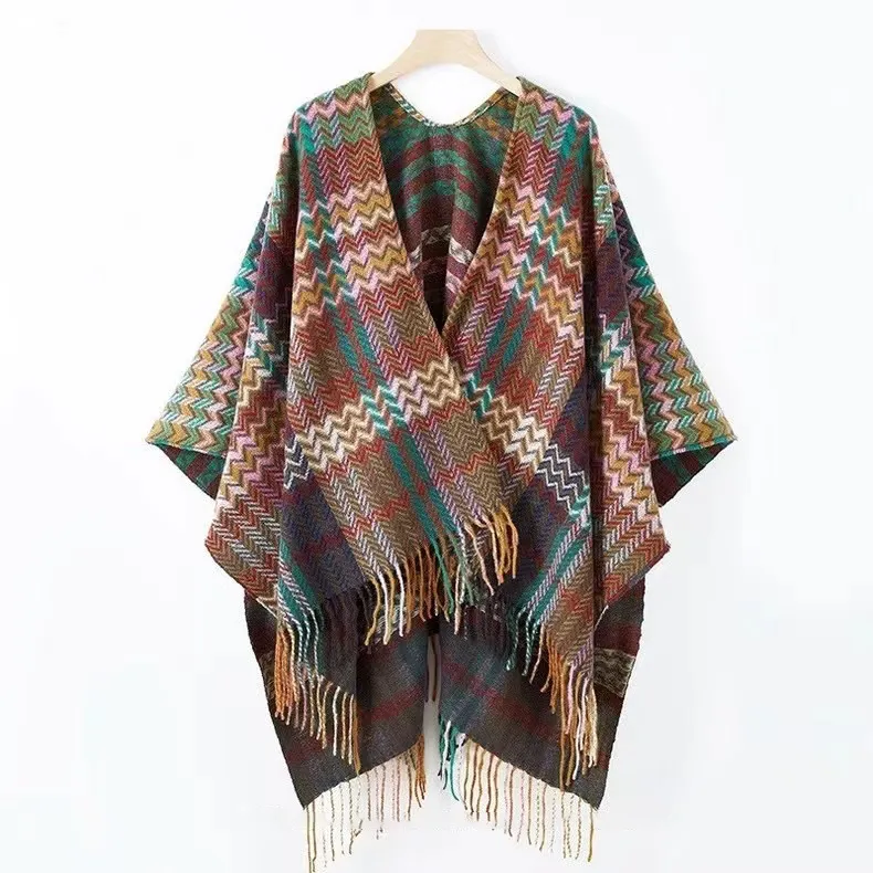 衣都精品- 新款民族風加厚流蘇開叉斗篷披肩