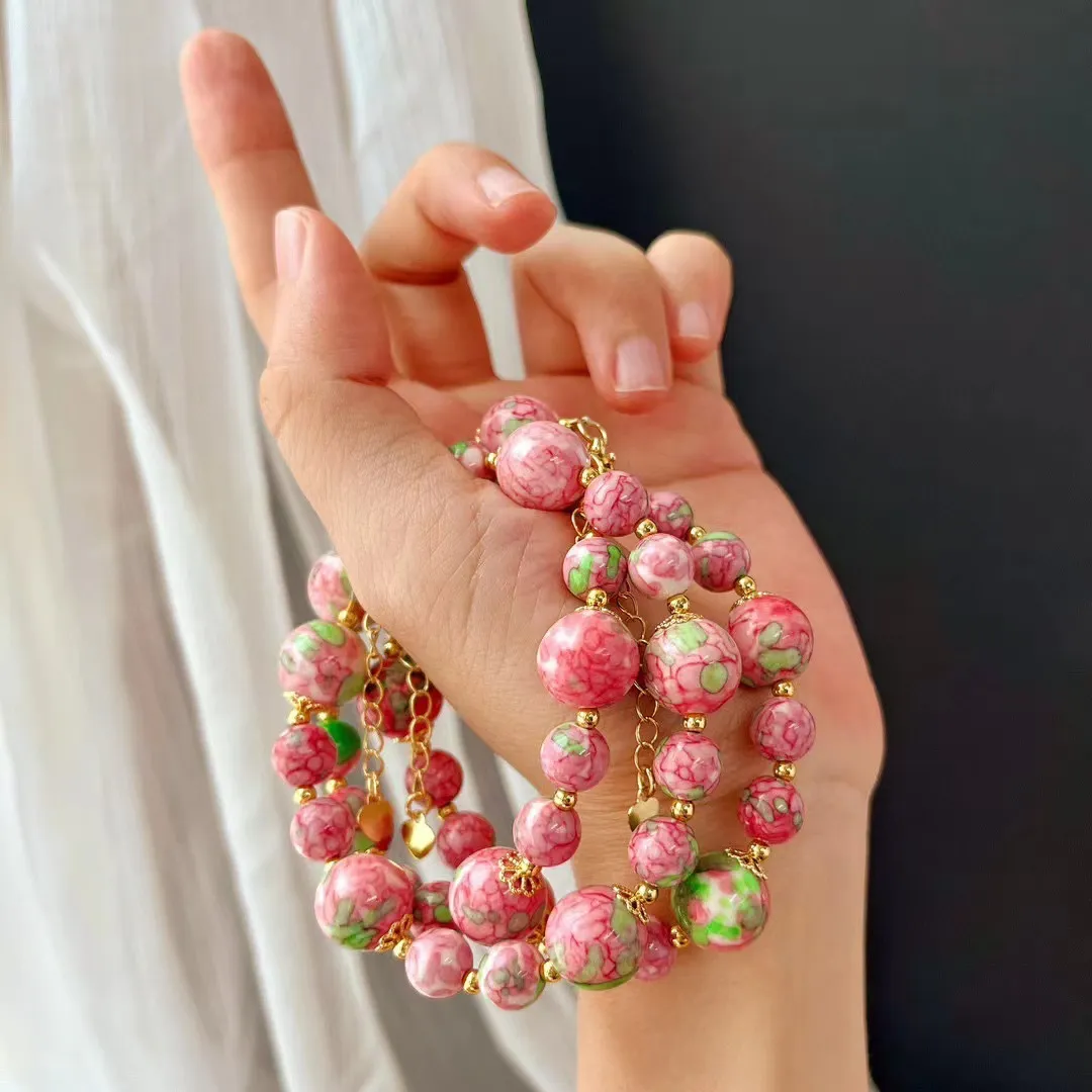 衣都精品- 新款復古桃粉色琉璃陶瓷珠手鏈