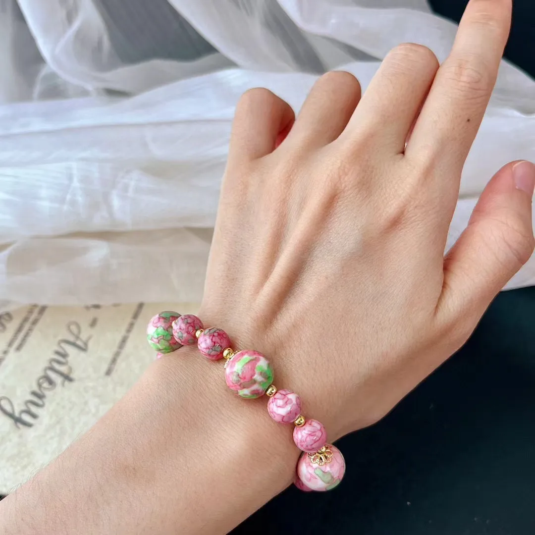 衣都精品- 新款桃花色粉綠撞色石英岩手鏈