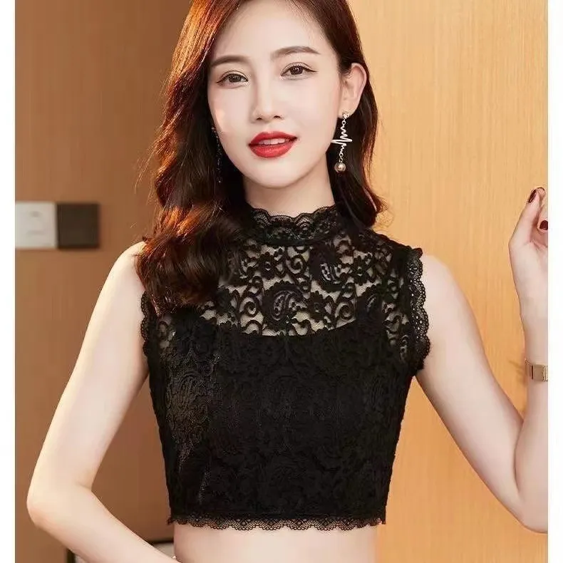 衣都精品- 新款洋氣百搭蕾絲假領子短款高腰上衣