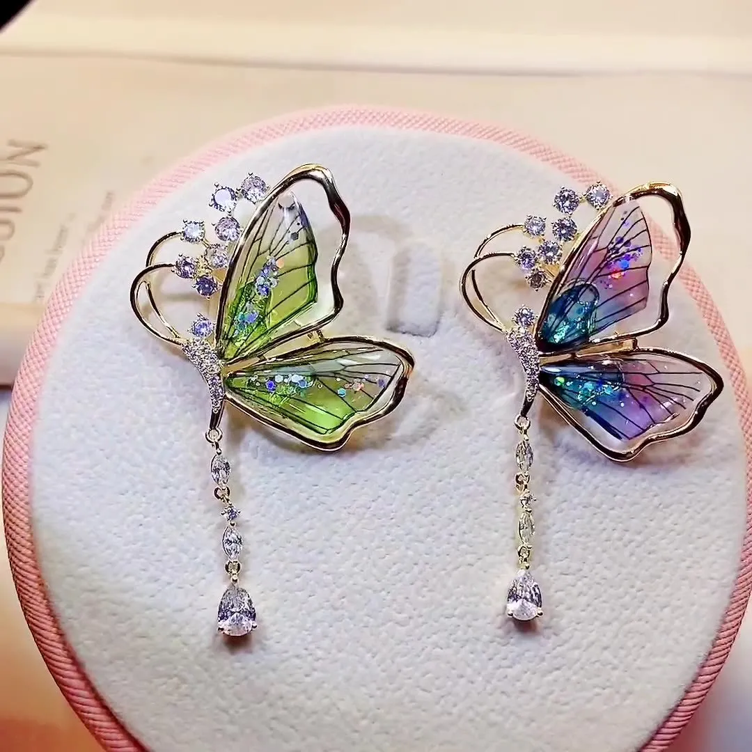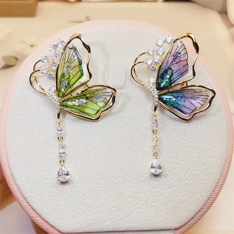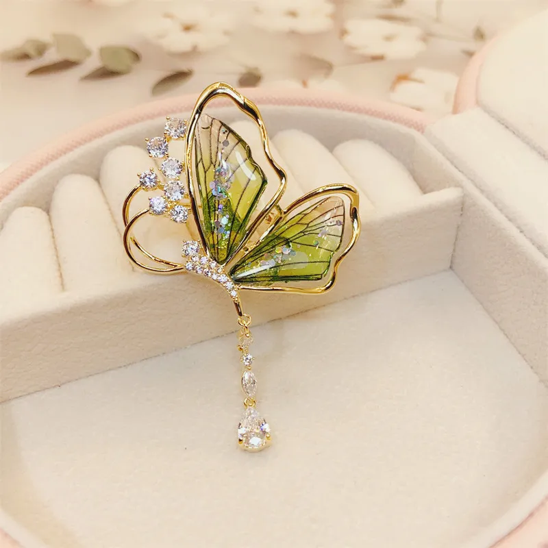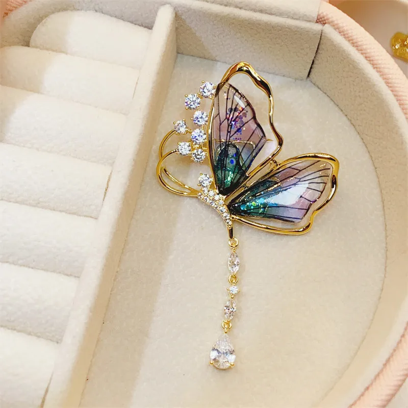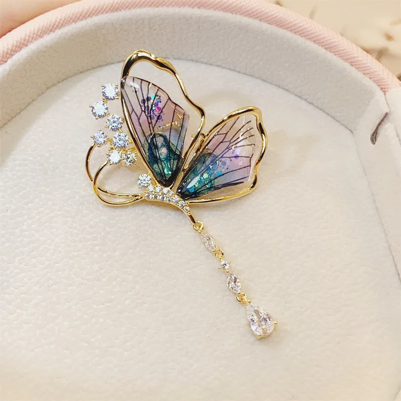 衣都精品- 新款流蘇水滴狀輕奢蟬翼蝴蝶胸針
