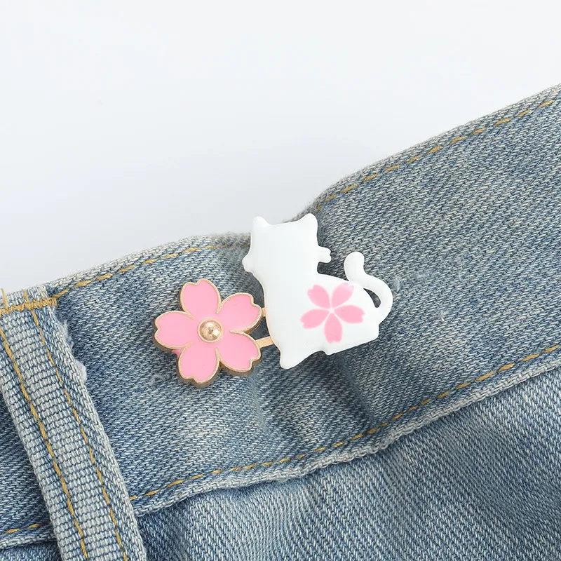 衣都精品- 新款可愛櫻花貓咪免釘免縫收腰紐扣