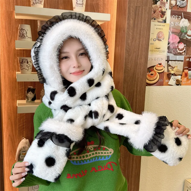 衣都精品- 新款加厚雙層卡通毛絨圍巾+手套
