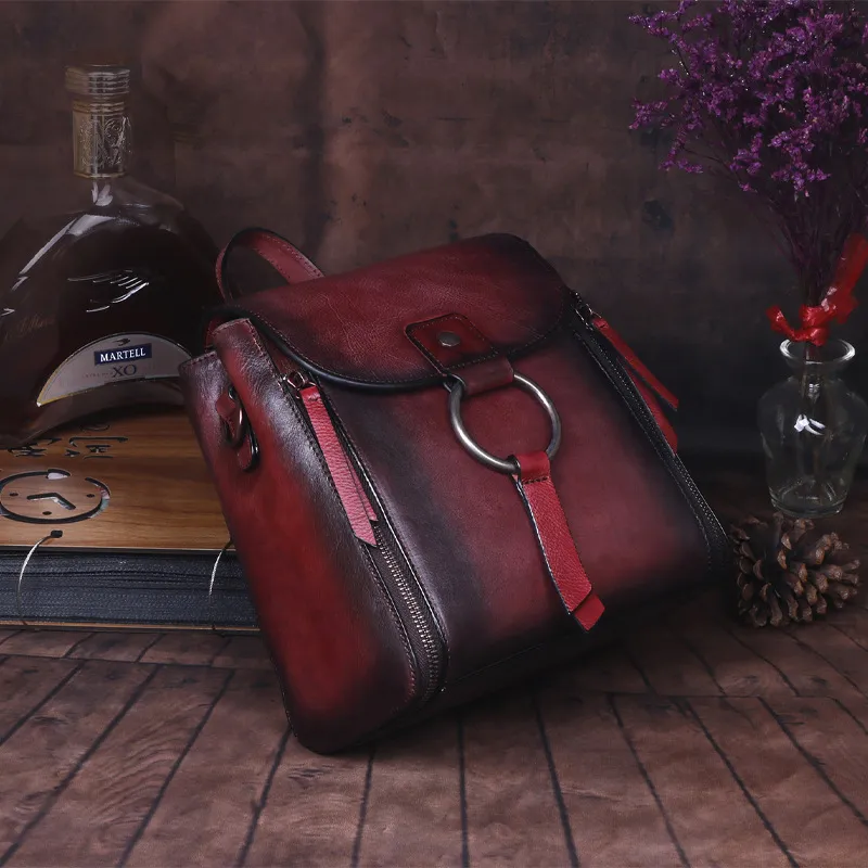 衣都精品- 新款擦色頭層牛皮三用手提單肩雙肩背包
