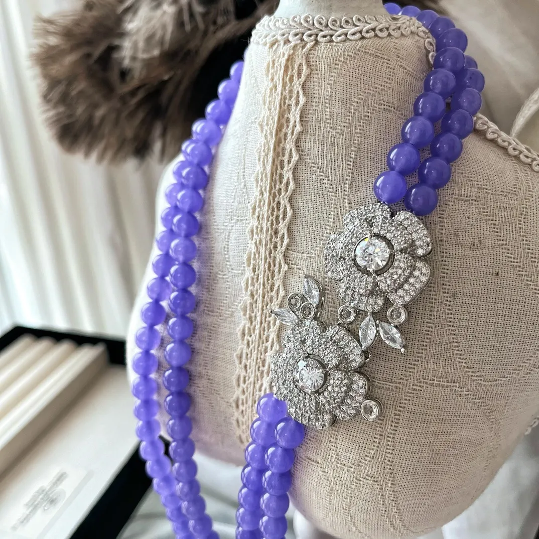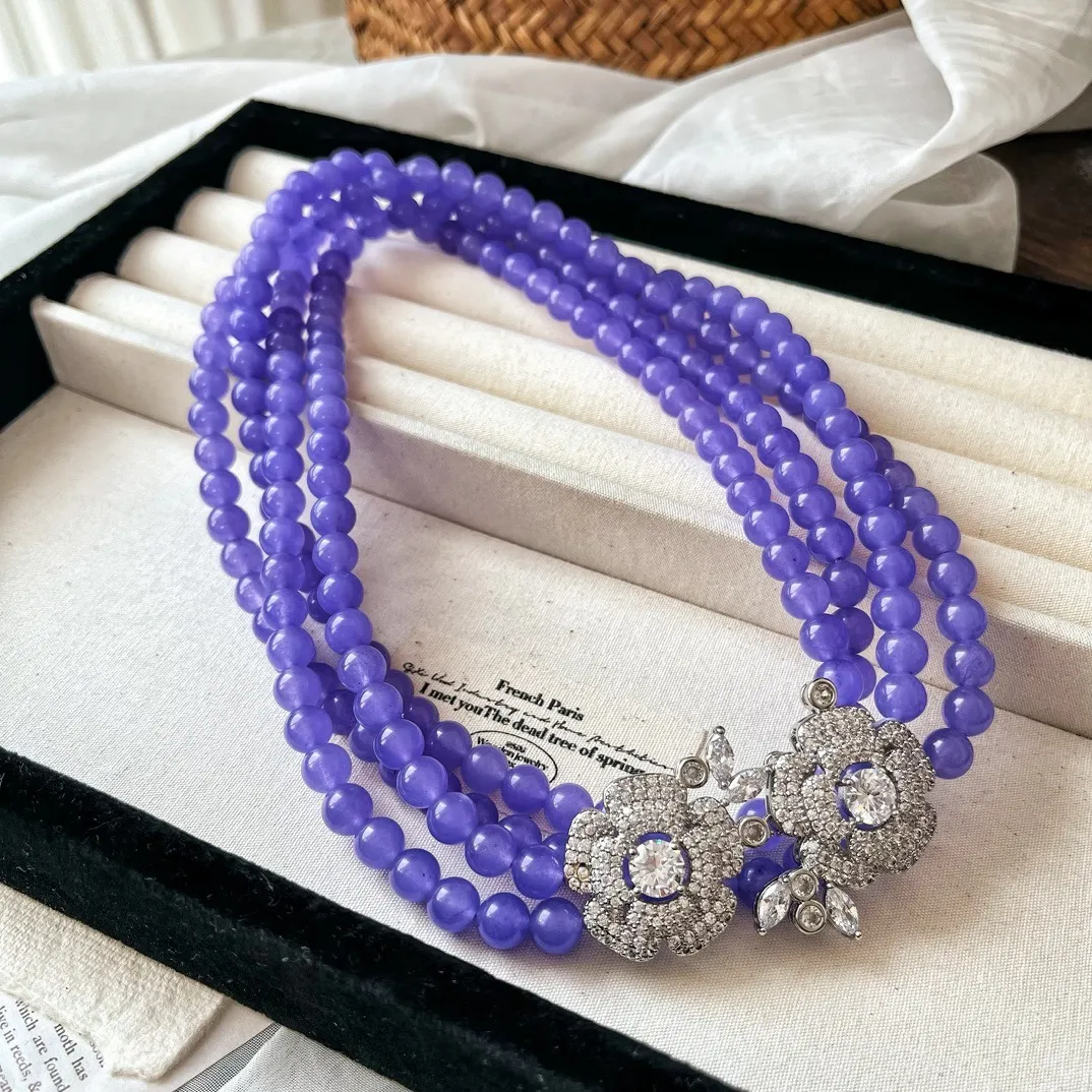 衣都精品- 新款復古紫色雙層天然石英岩項鍊