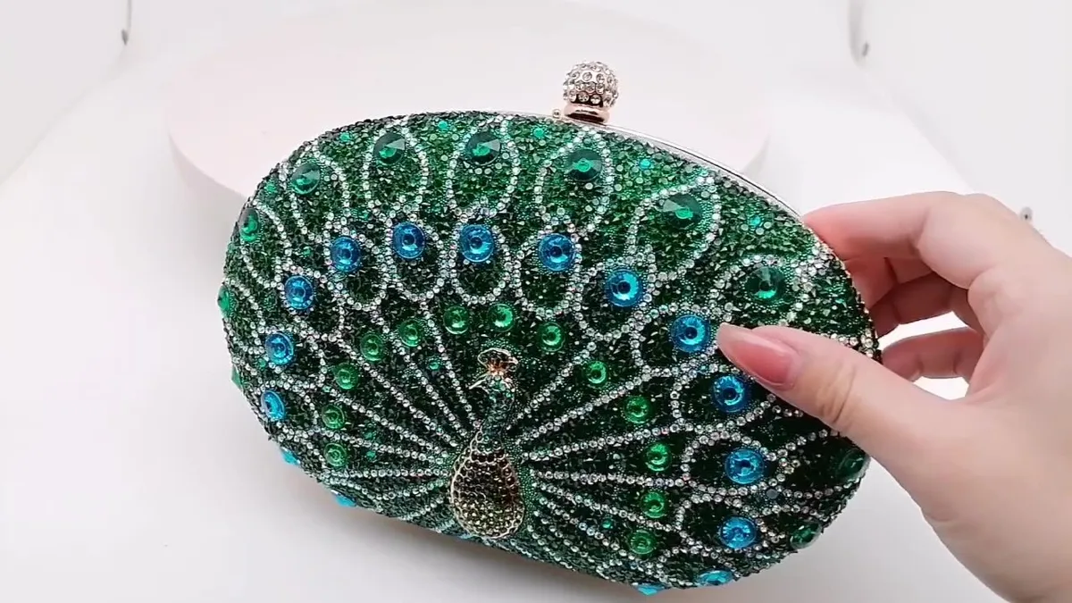 衣都精品- 新款歐美時尚孔雀鑲鑽晚宴包