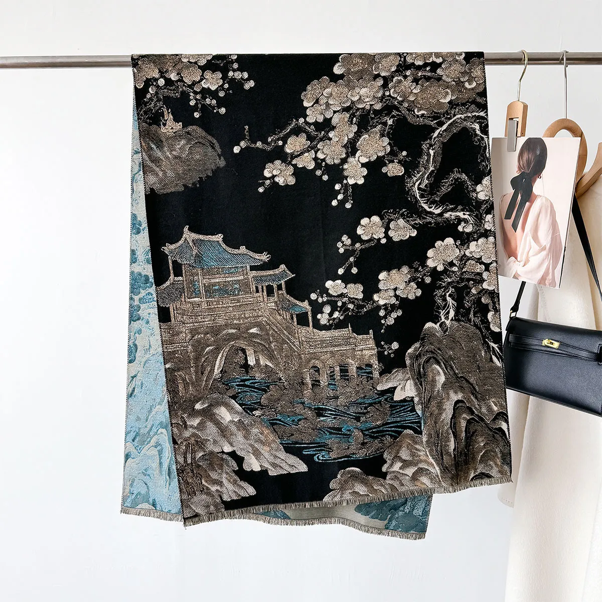 衣都精品- 新款復古文藝油畫風保暖仿羊絨圍巾