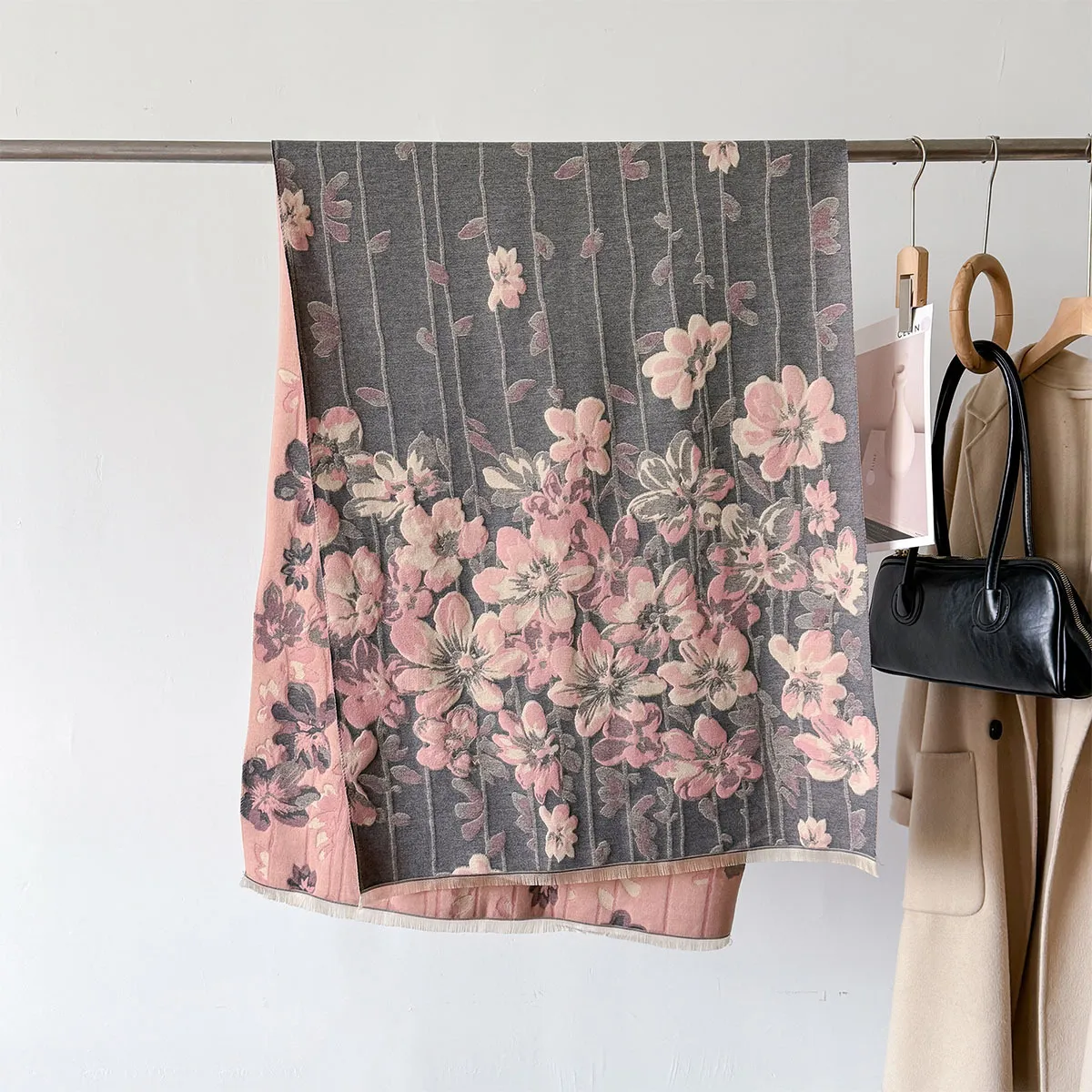 衣都精品- 新款時尚百搭保暖富貴牡丹花圍巾