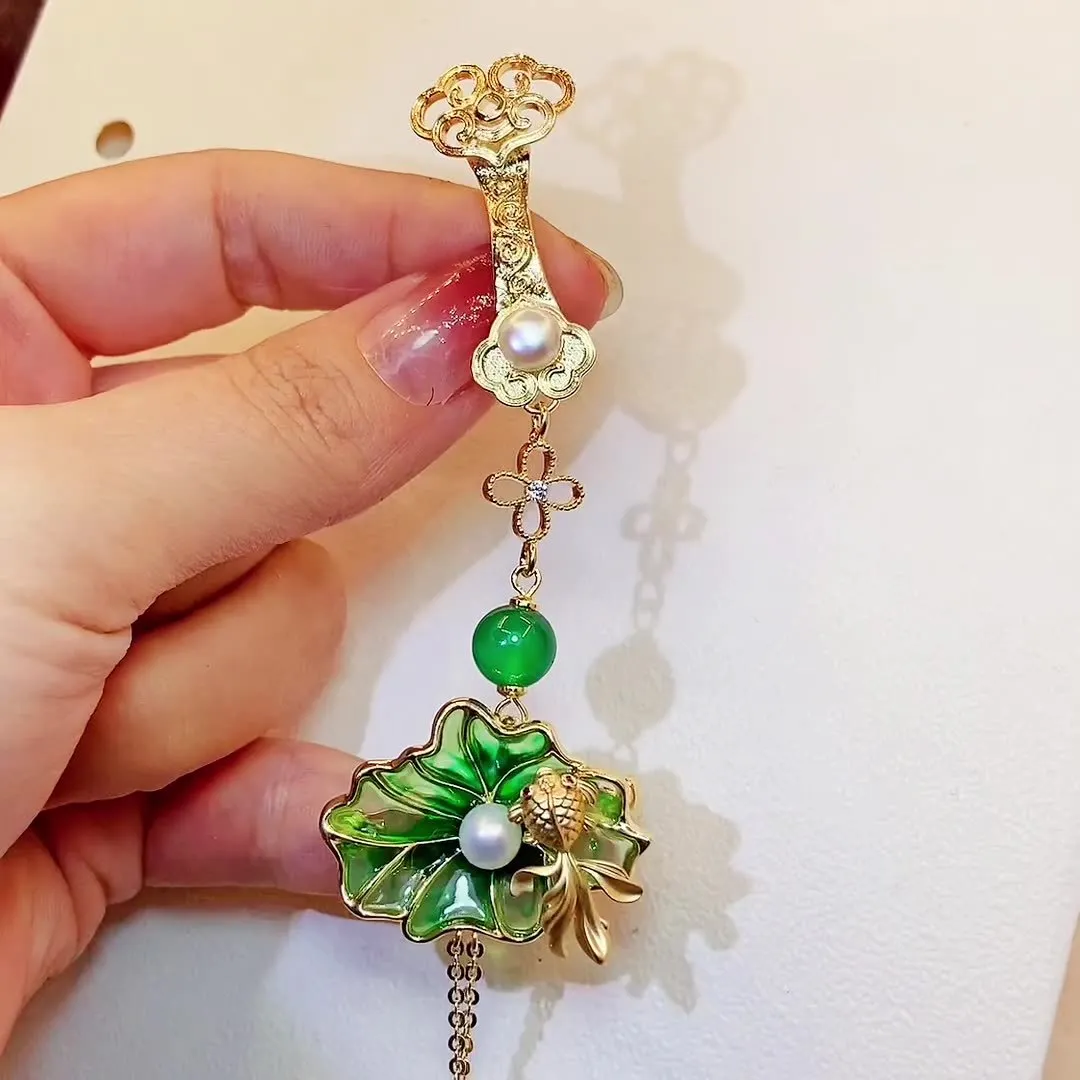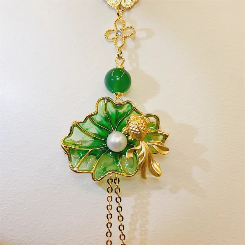 衣都精品- 新款如意錦鯉荷葉流蘇中國風旗袍壓襟