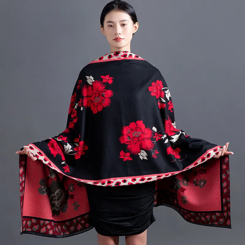衣都精品- 新款保暖加厚百搭仿羊絨提花圍巾
