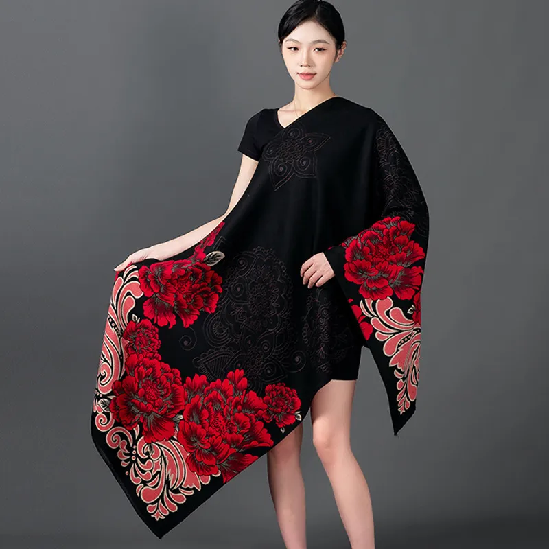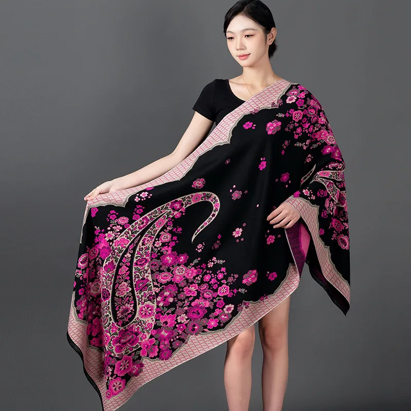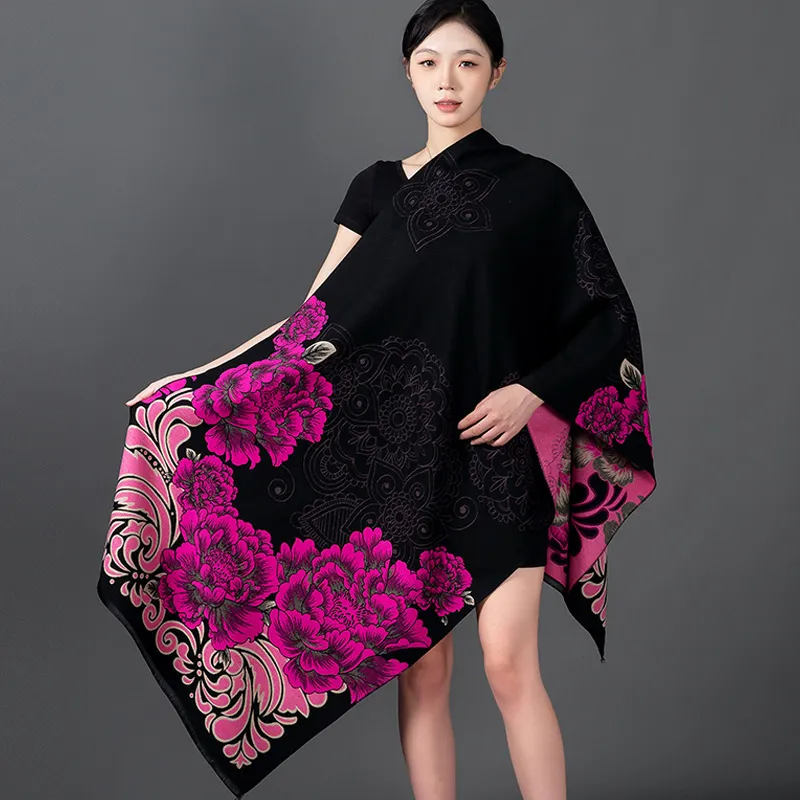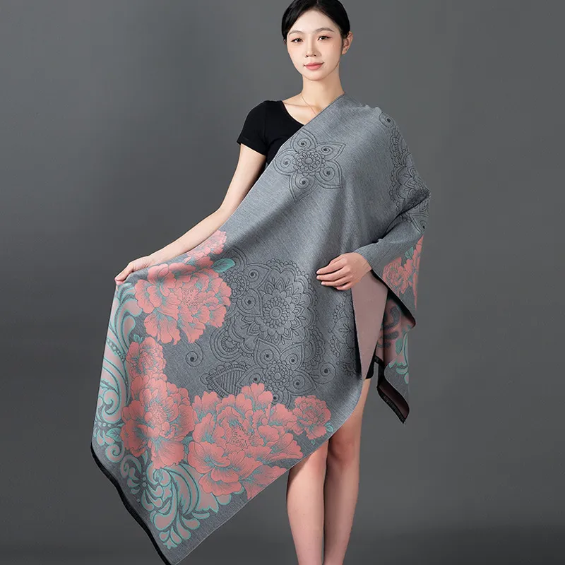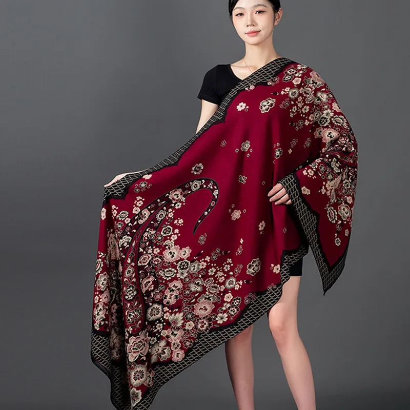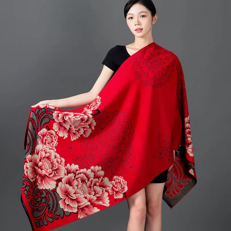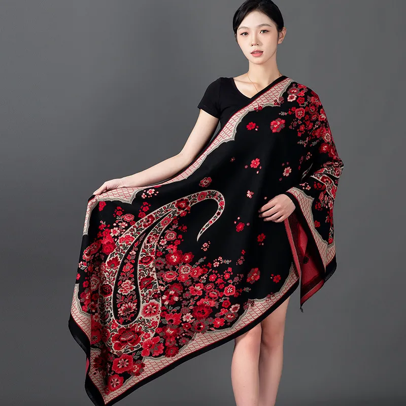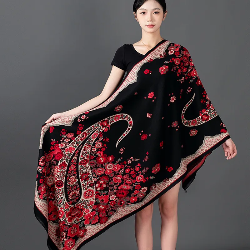 所售品名:圍巾 產品顏色 : 大牡丹花-紅色,大牡丹花-灰粉,大牡丹花-黑玫,大牡丹花-黑紅,大牡丹花-藏青綠,玫瑰腰果-黑玫,玫瑰腰果-棗紅,玫瑰腰果-黑紅,玫瑰腰果-淺灰粉 產品尺碼:均碼 主要成分 : 仿羊絨