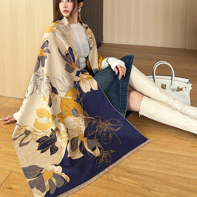 衣都精品- 新款百搭中國風雙面兩用仿羊絨圍巾