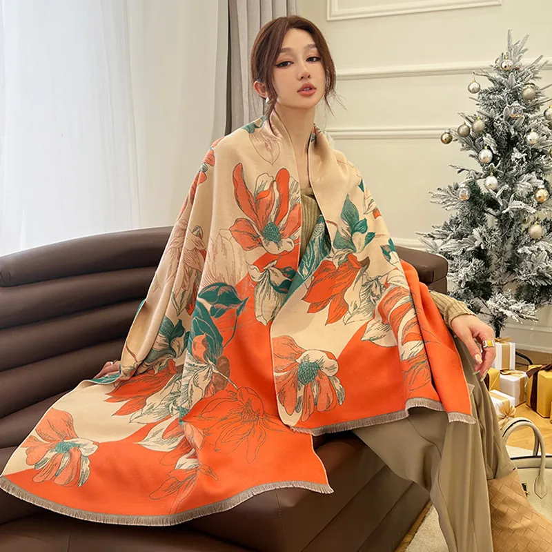 衣都精品- 新款氣質輕奢風提花仿羊絨圍巾