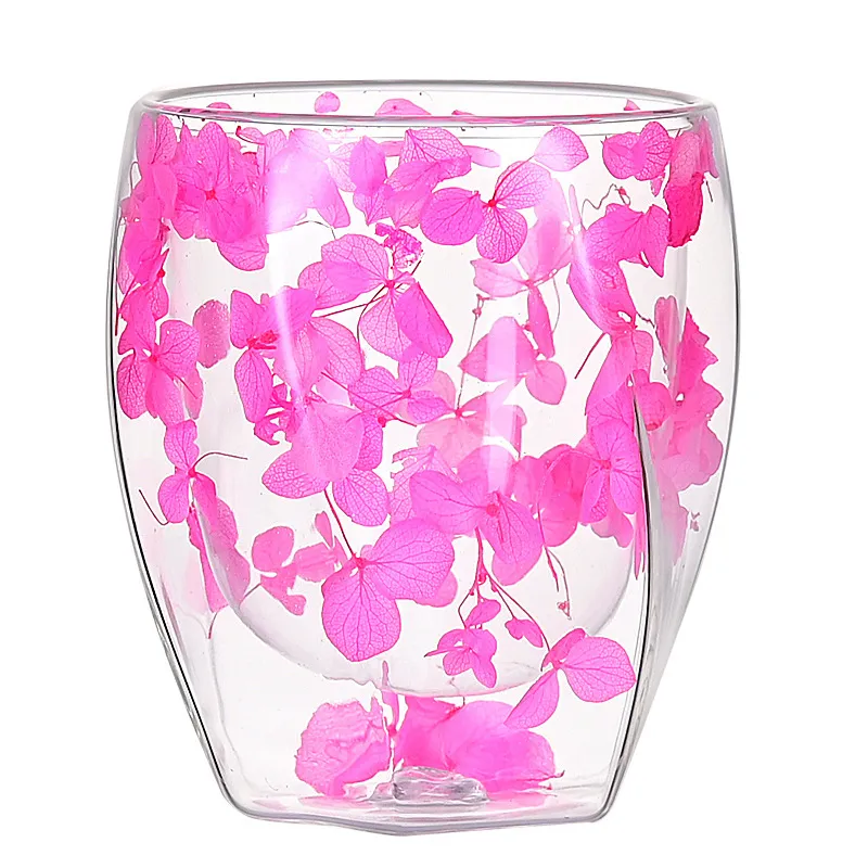 衣都精品- 新款玻璃真花雙層高硼矽馬克杯