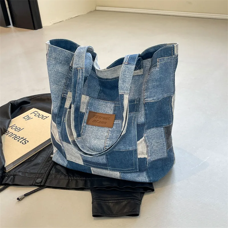 衣都精品- 新款韓版大容量慵懶風牛仔布托特包
