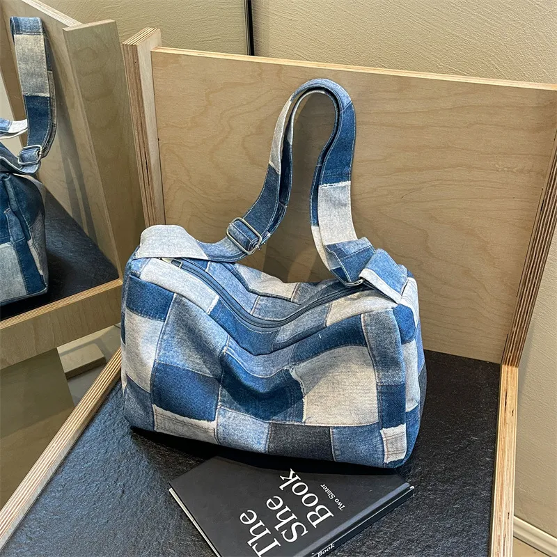 衣都精品- 新款韓版大容量慵懶風牛仔布托特包