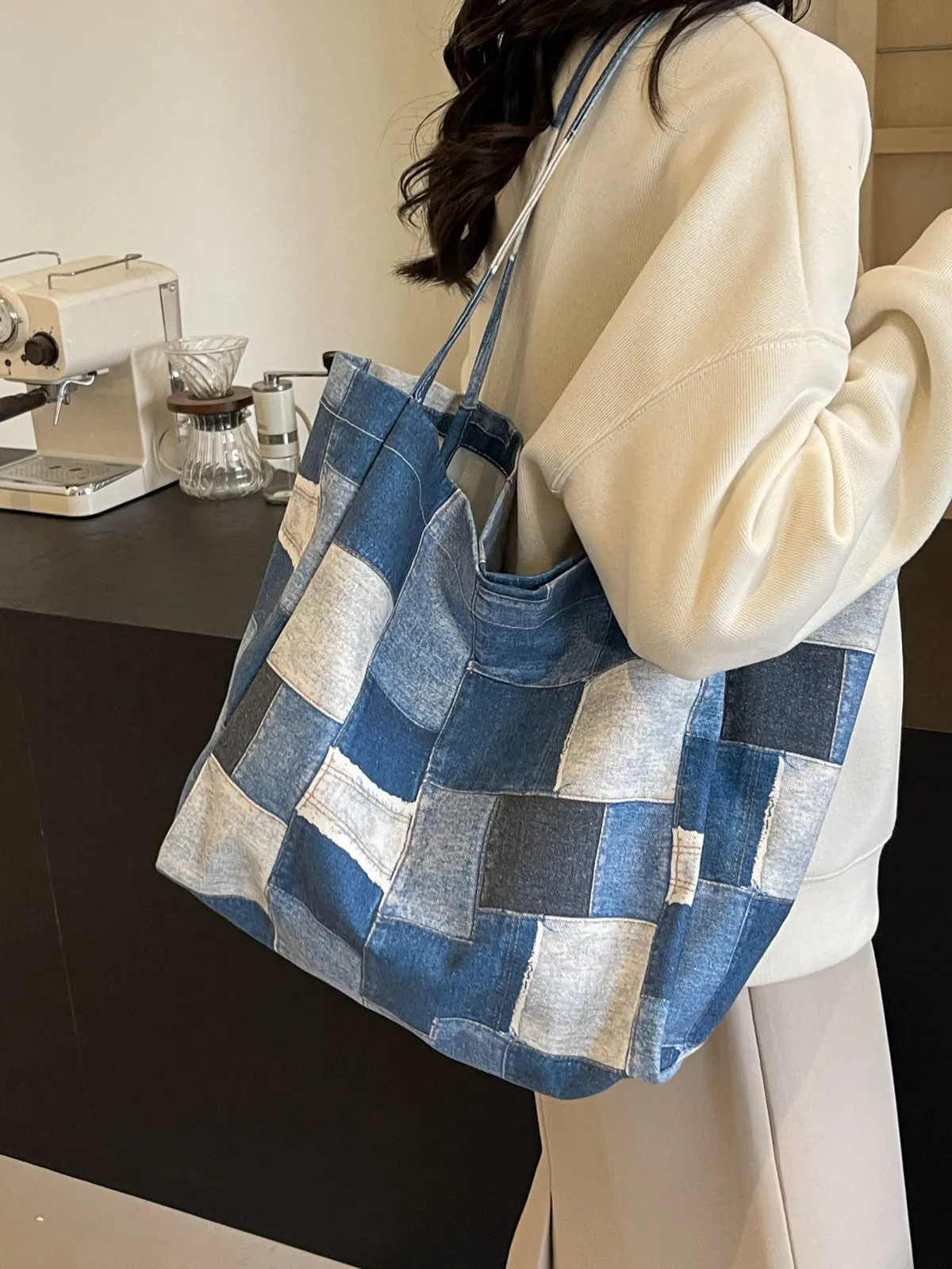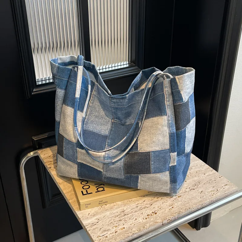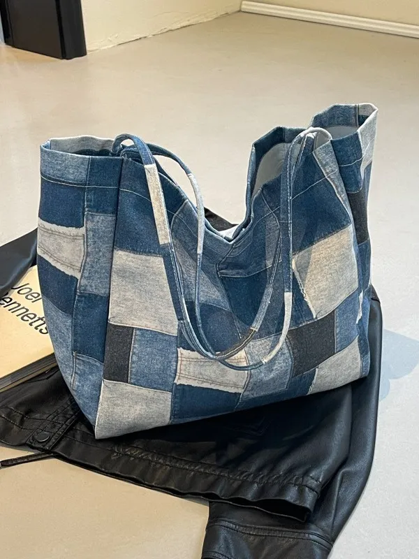 衣都精品- 新款時尚拼接牛仔布單肩托特包
