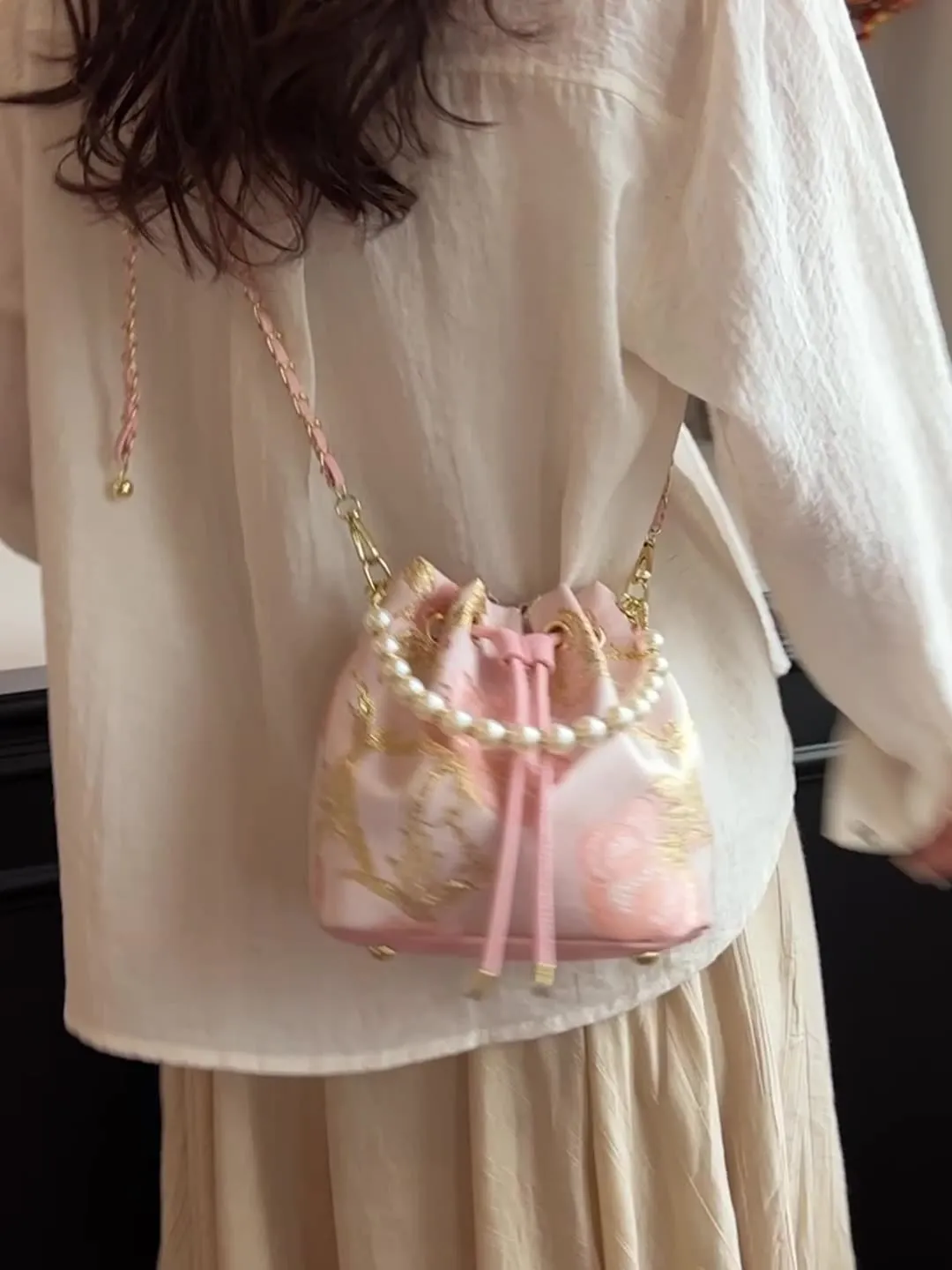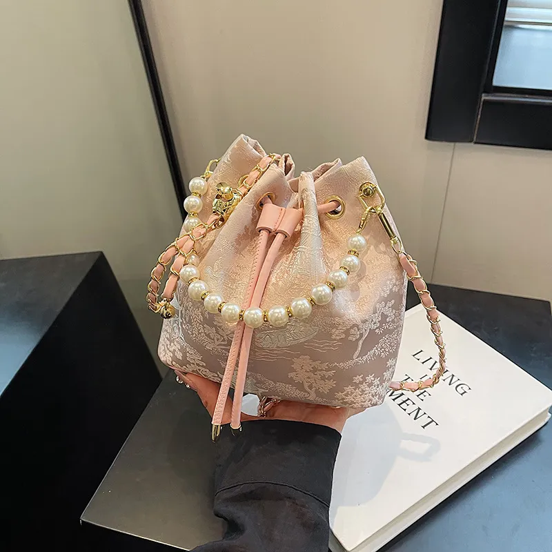 衣都精品- 新款中國風刺繡珍珠鏈條單肩斜挎包