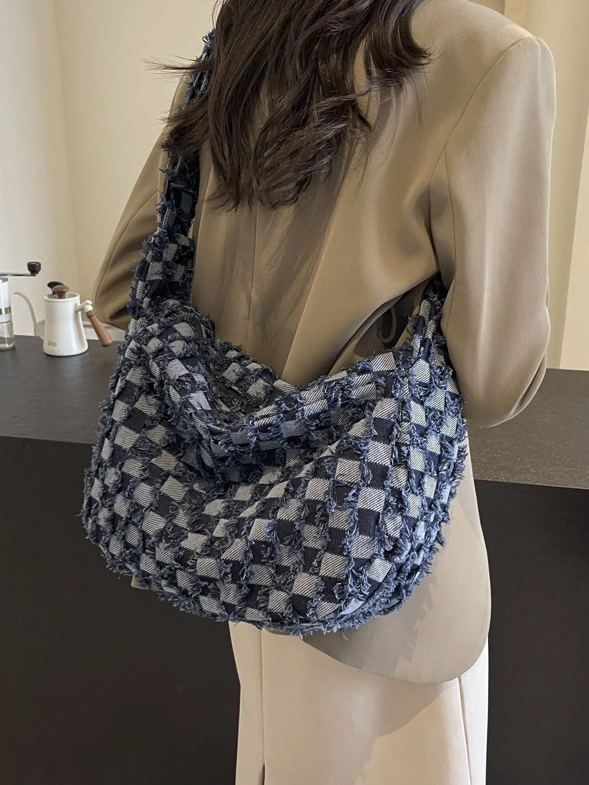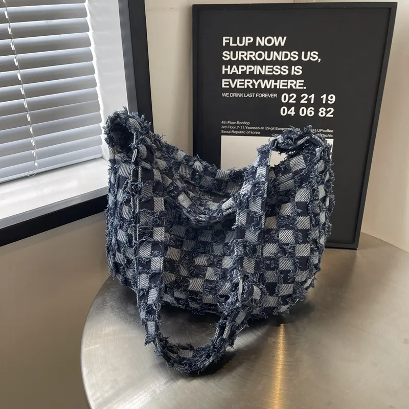 衣都精品- 新款時尚拼接牛仔布單肩托特包